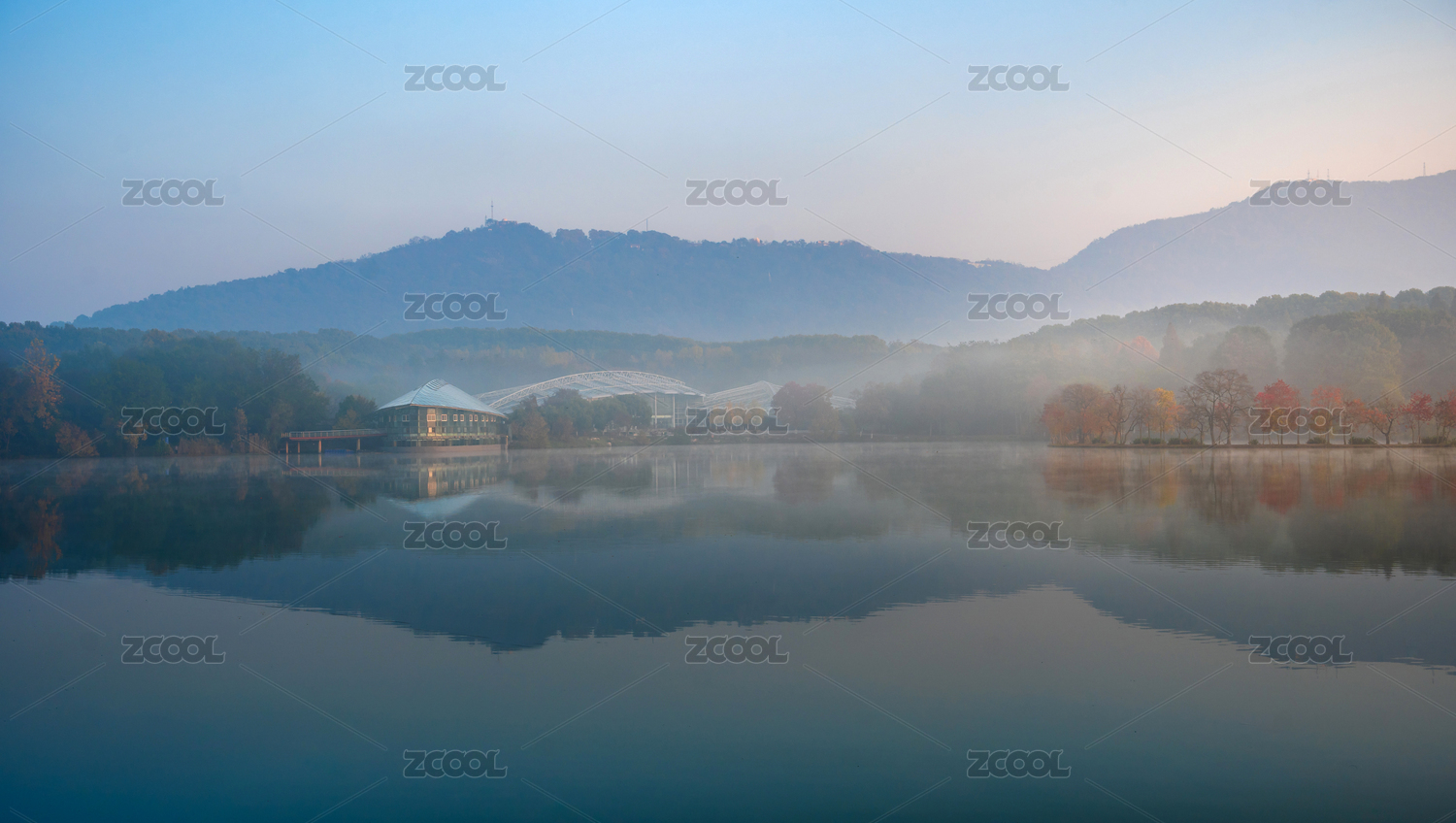 秋天蓝天下的中国江苏省南京明孝陵景区燕雀湖台