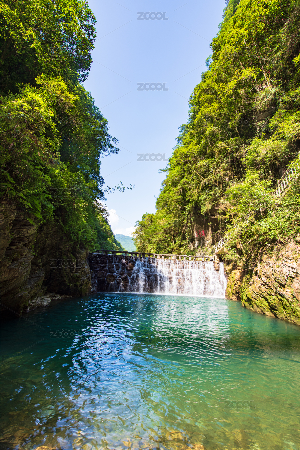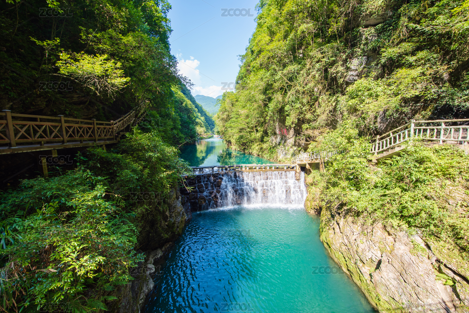 湖北,恩施,鹤峰县,屏山大峡谷,峡谷,河流,湛蓝,山谷,夏天,翠绿
