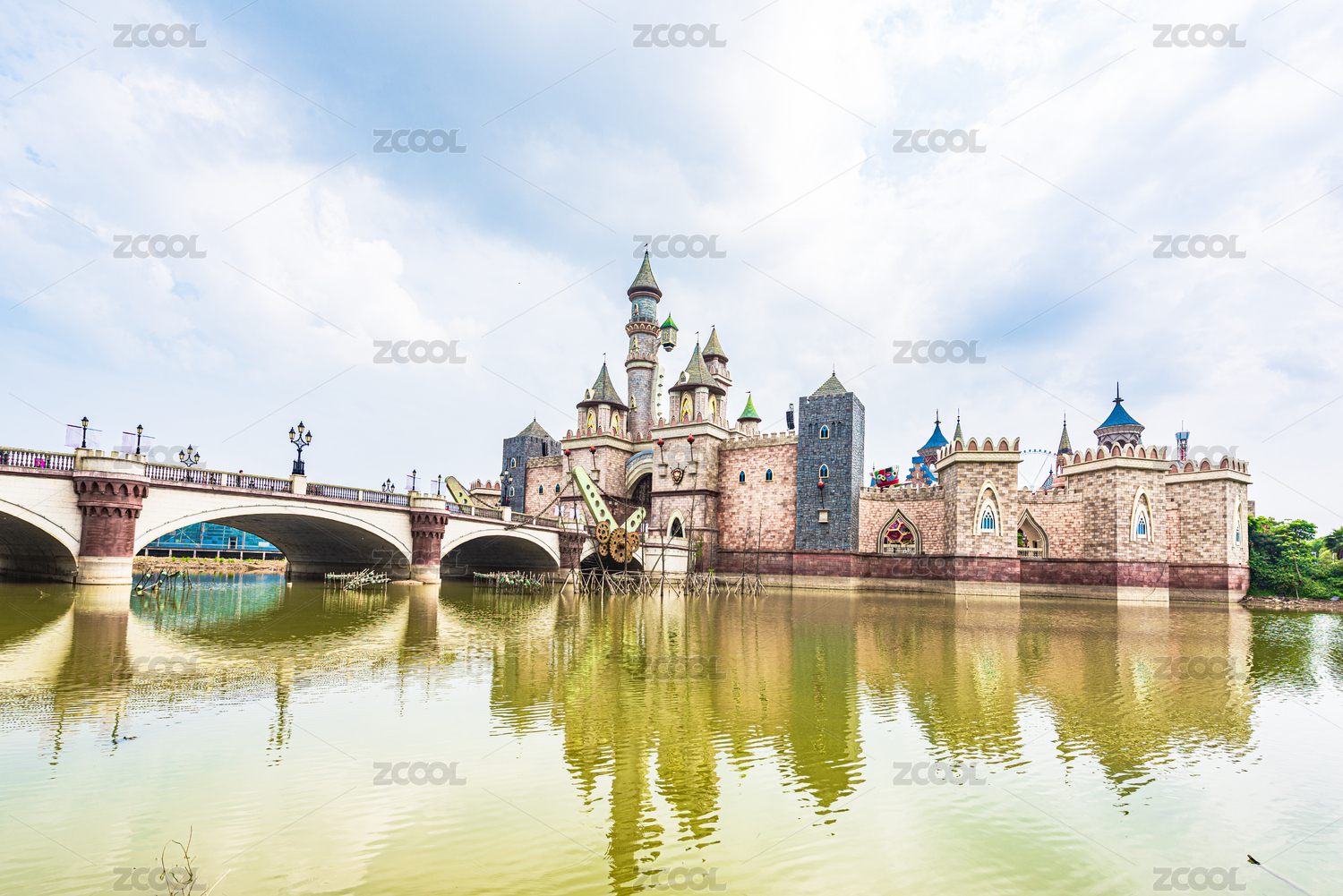广西,柳州,鱼峰区,卡乐星球,游乐园,主题乐园,湖面,倒影,多云,晴天