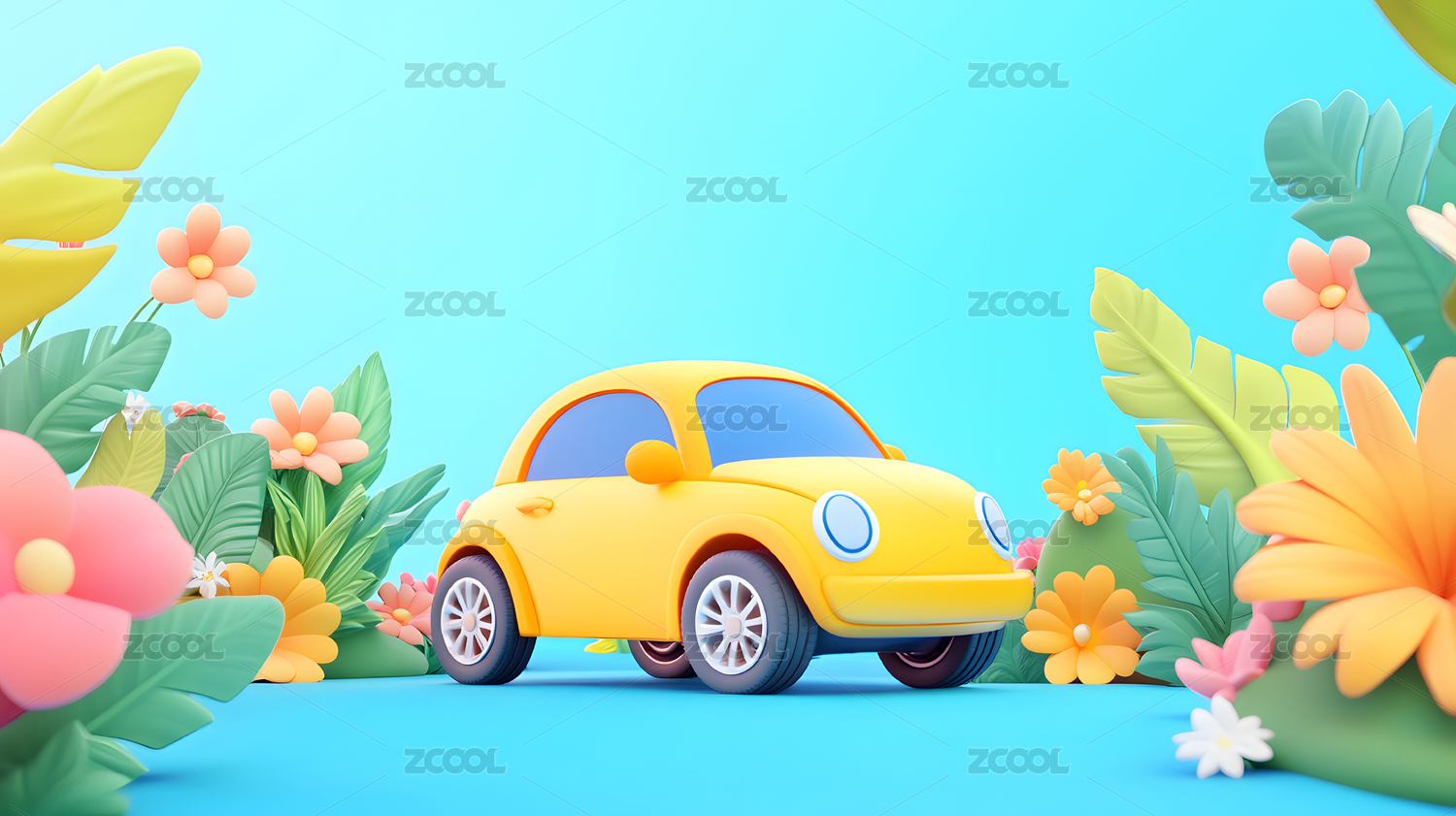 三维,立体,3D,插画,背景,壁纸,可爱,卡通,小车,汽车