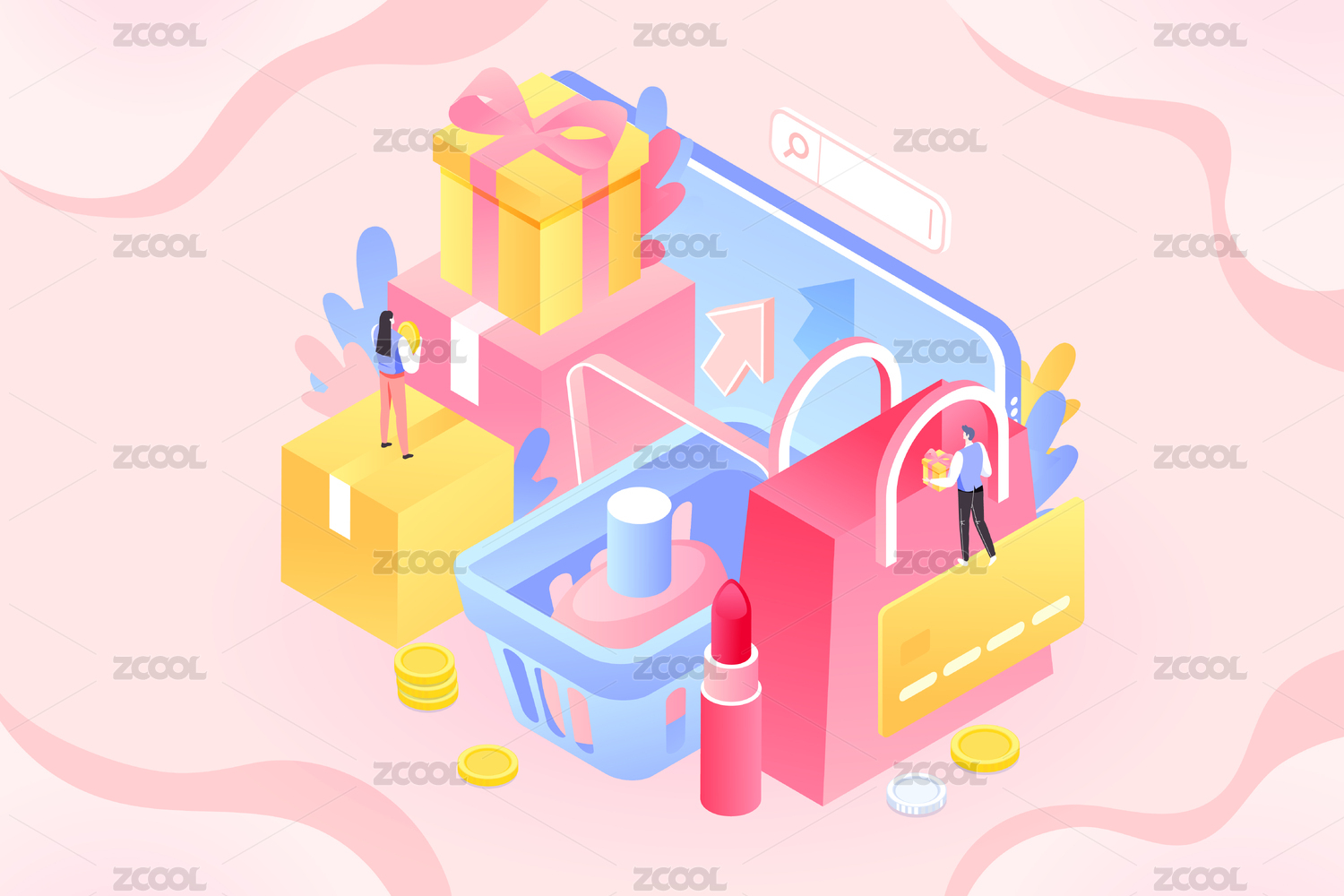 2.5d等距购物电商矢量插画