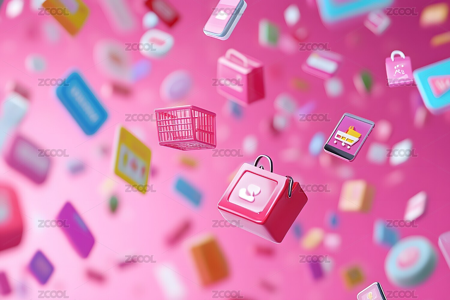 3D,电商,海报,壁纸,插画,背景,商务,科技,购物,购物车