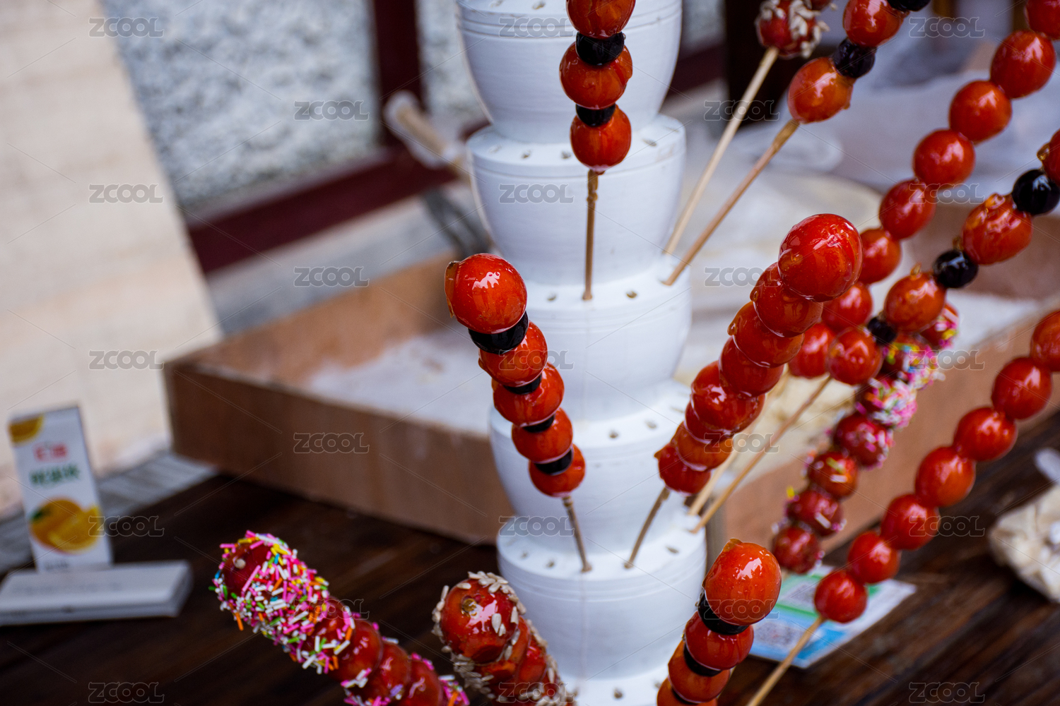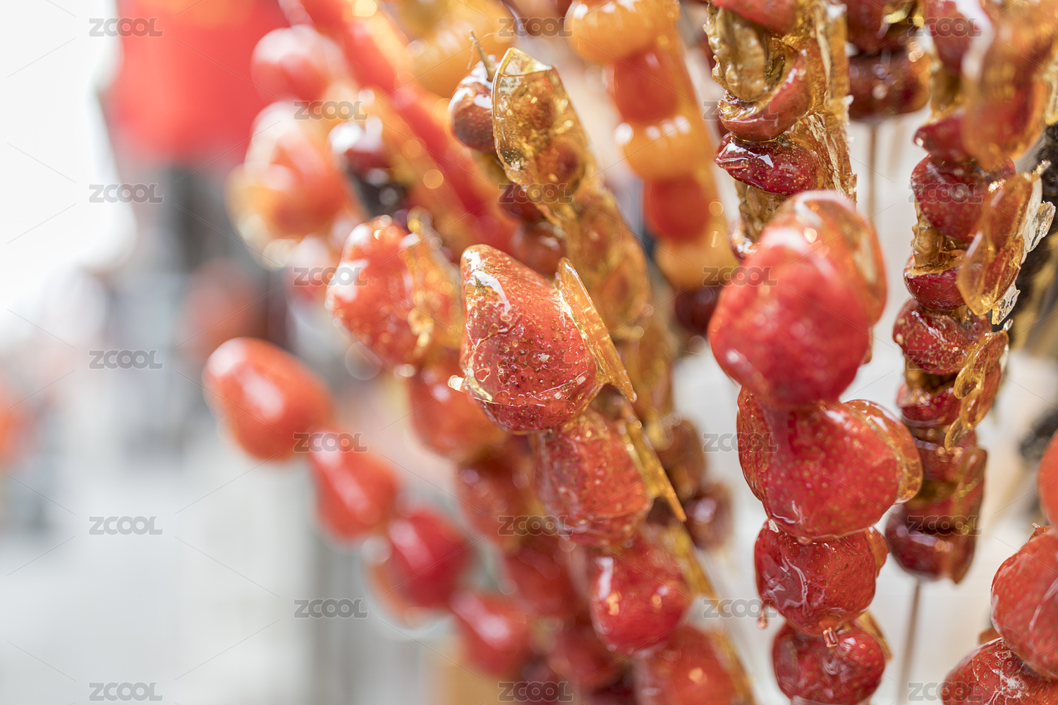 小摊售卖的传统特色小吃北京冰糖葫芦