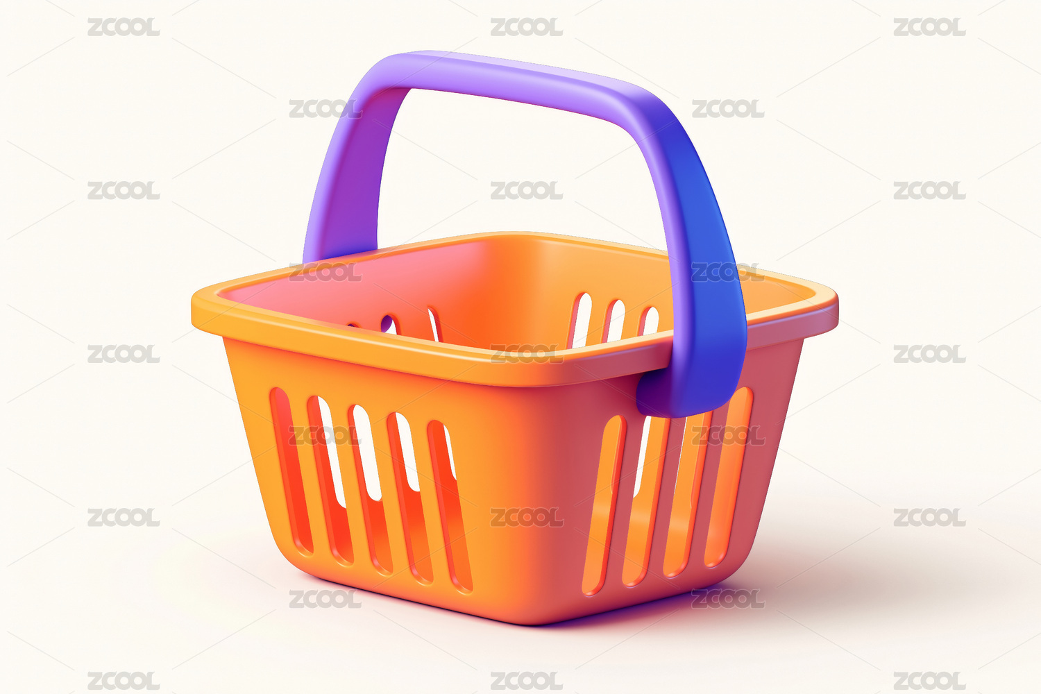3D卡通的,一个橙色的购物篮