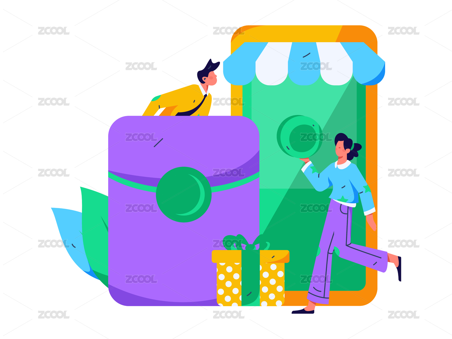 2.5d购物电商矢量插画