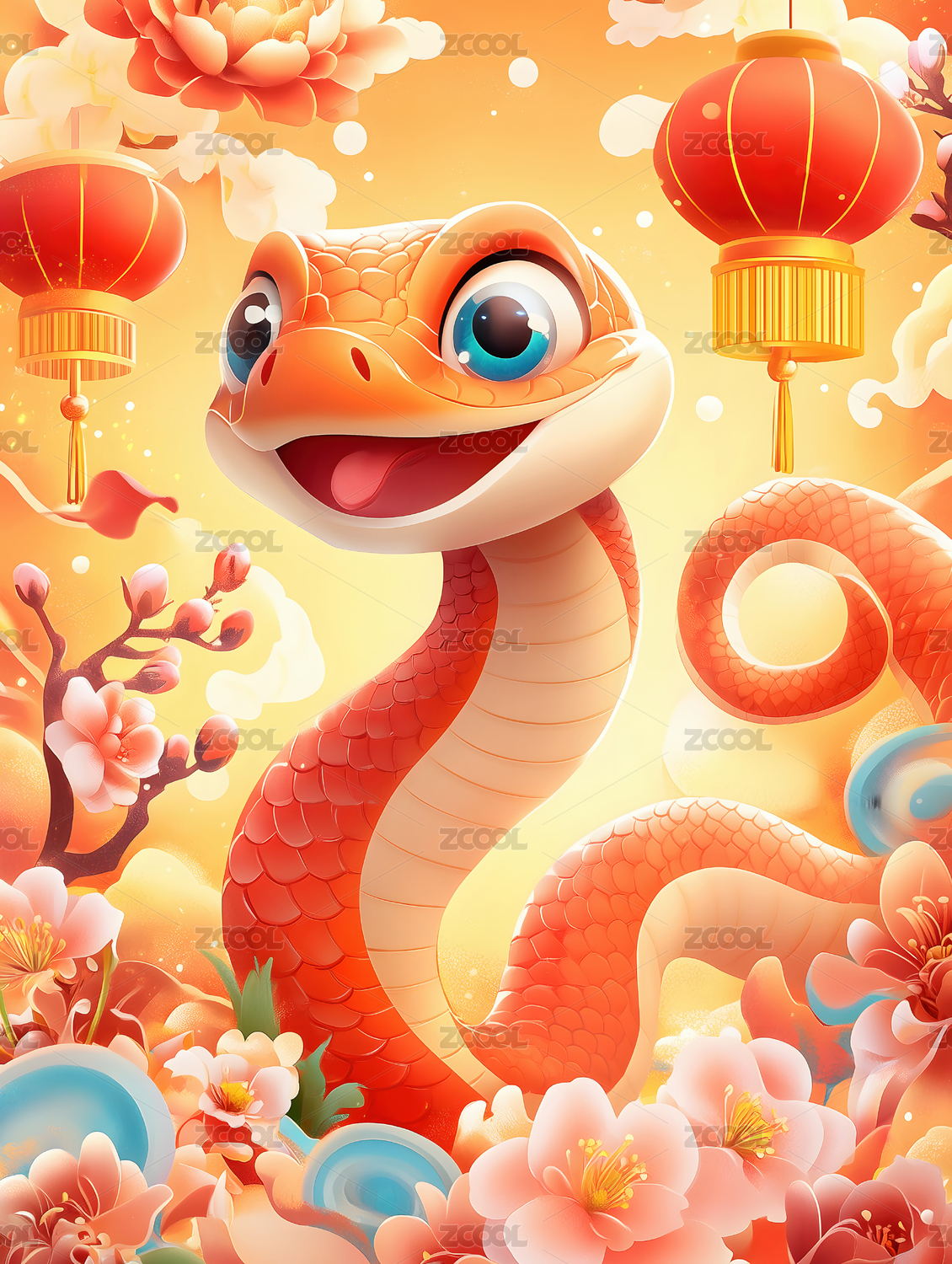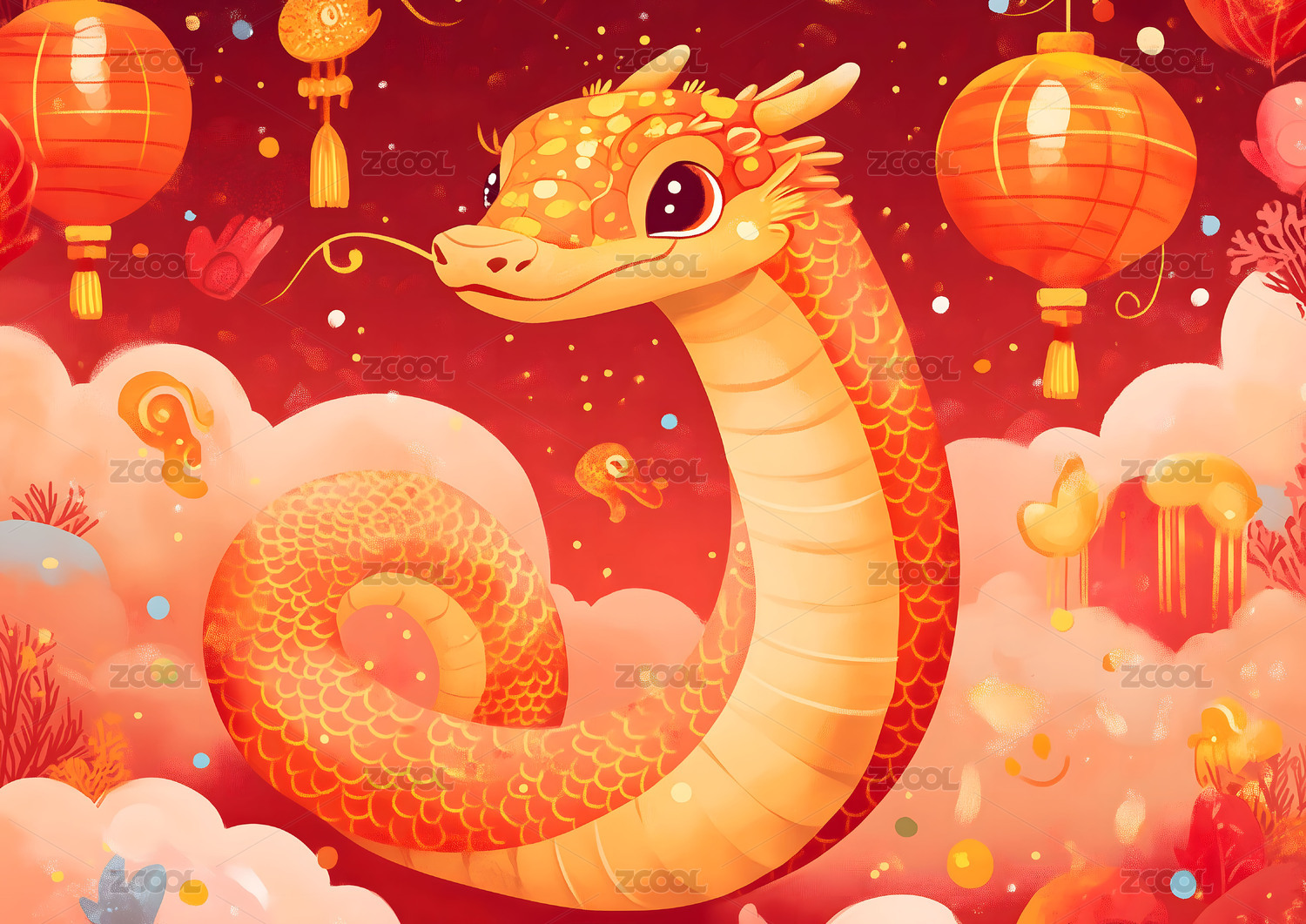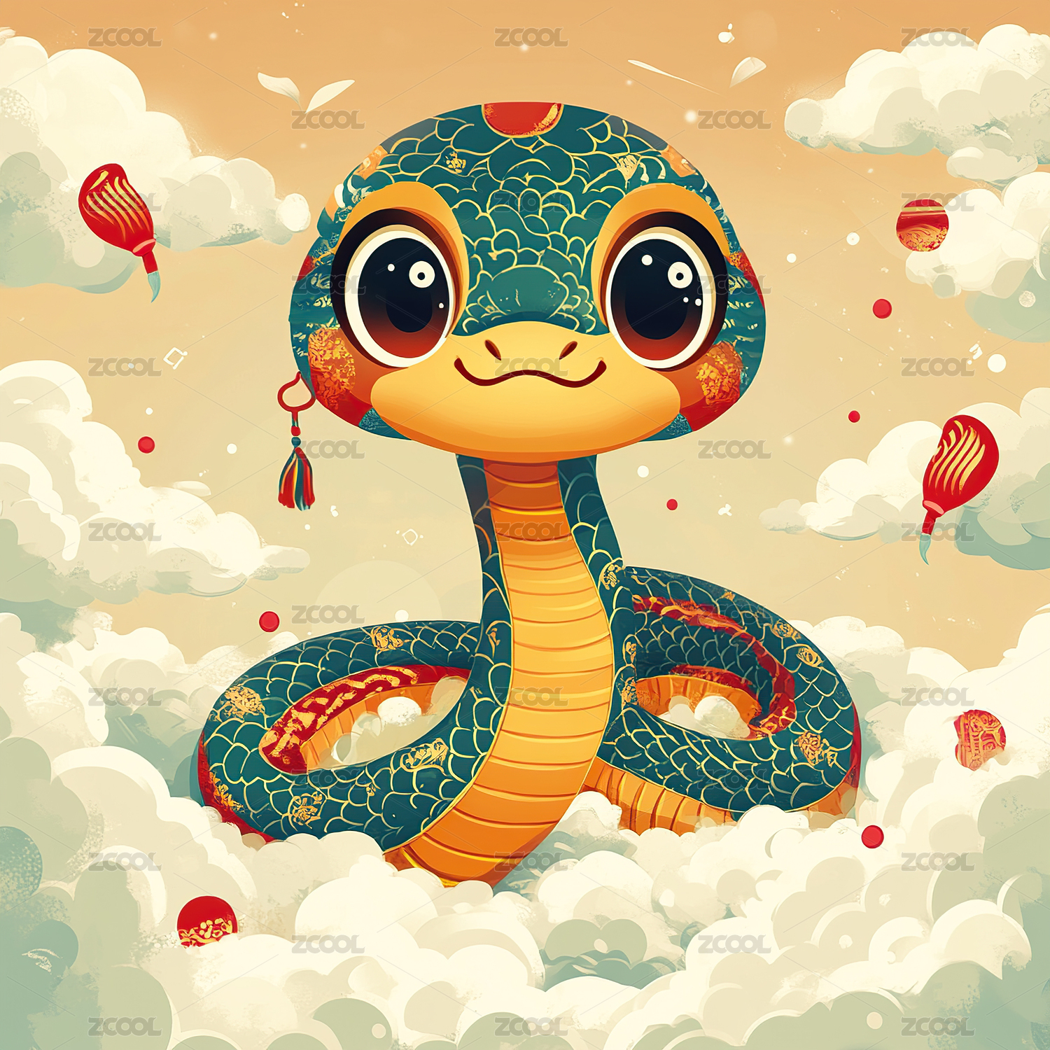 2025春节金蛇宝宝蛇年可爱吉祥物年画