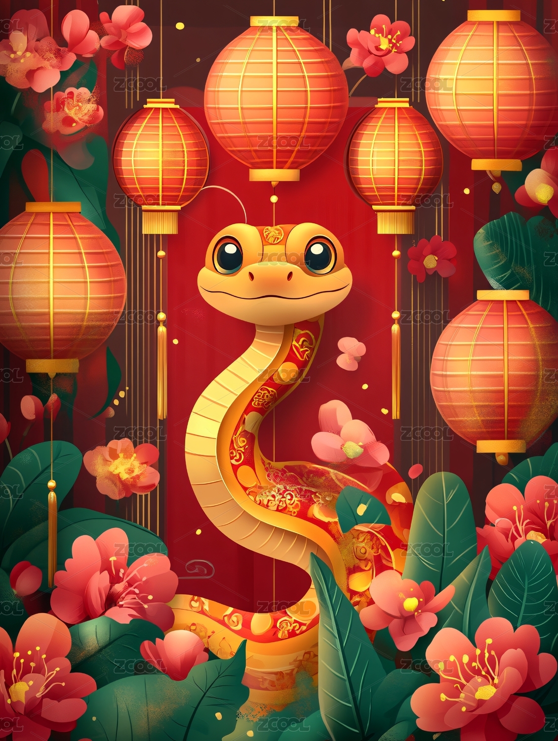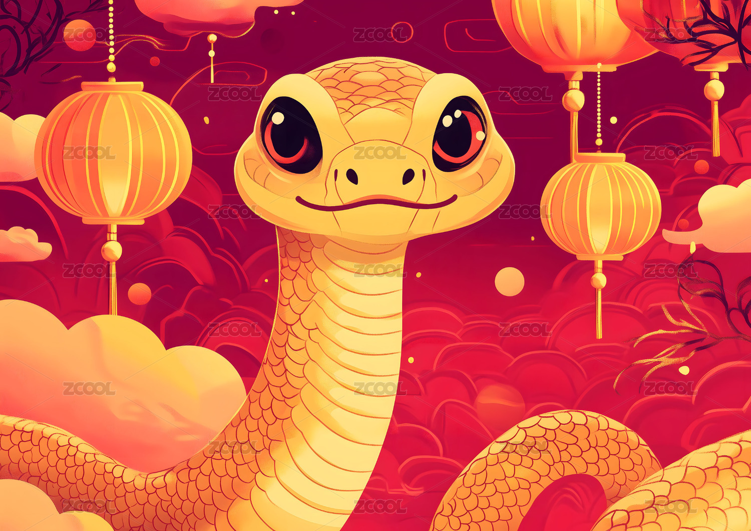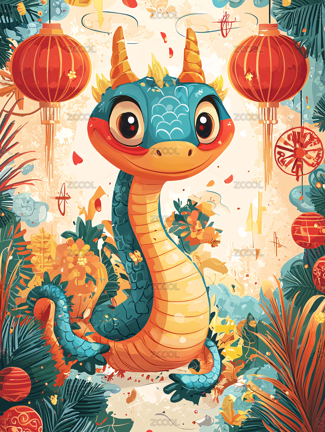 2025春节金蛇宝宝蛇年可爱吉祥物年画