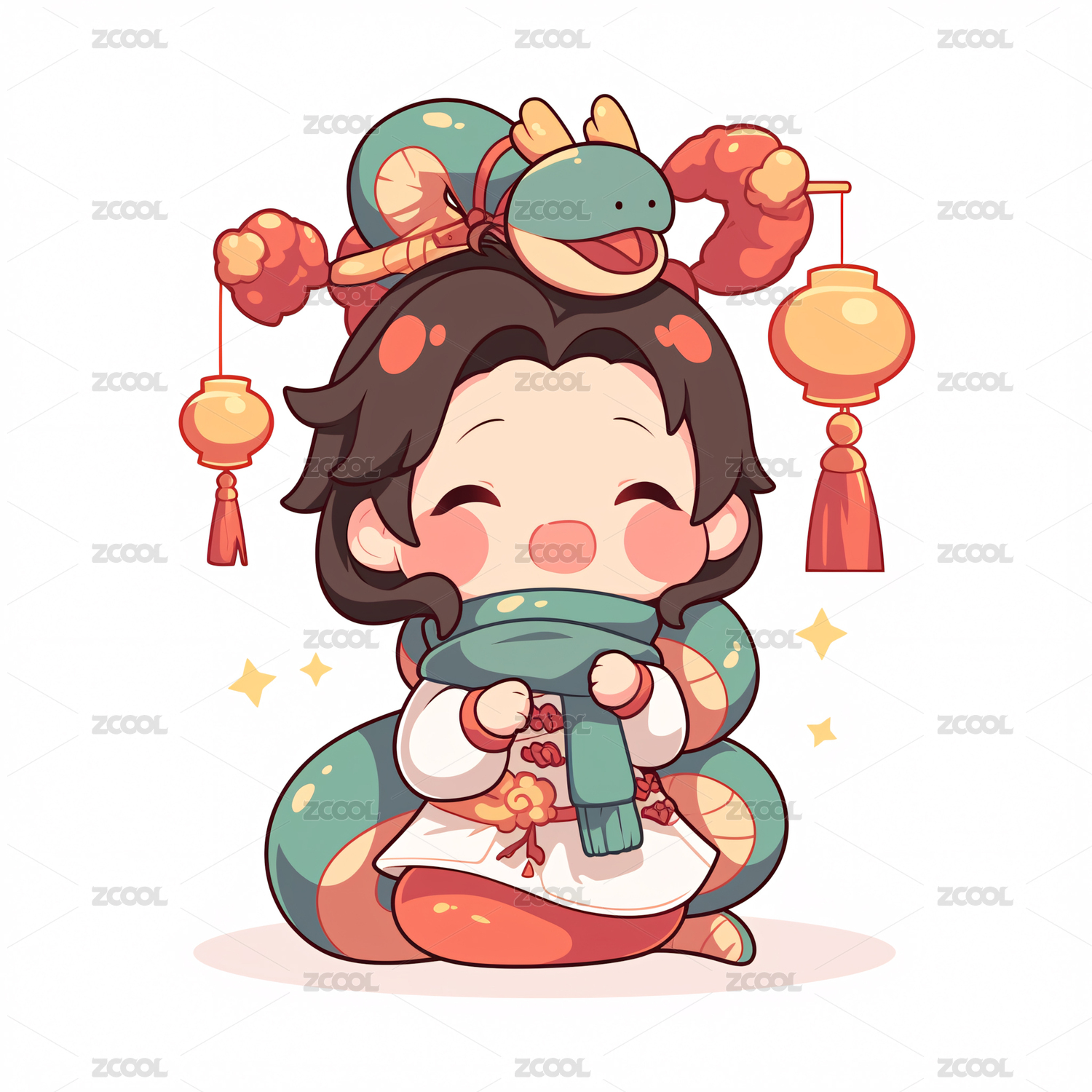 蛇年卡通可爱形象十二生肖蛇吉祥物