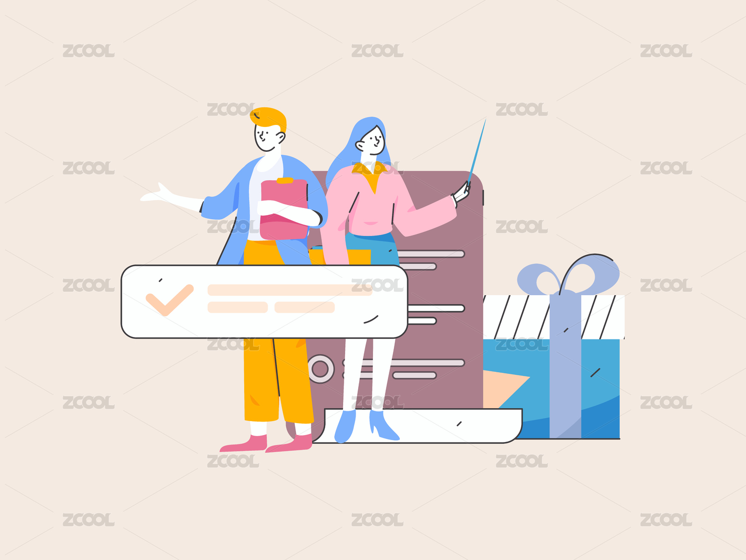 商务工作的人物扁平矢量概念运营手绘插画