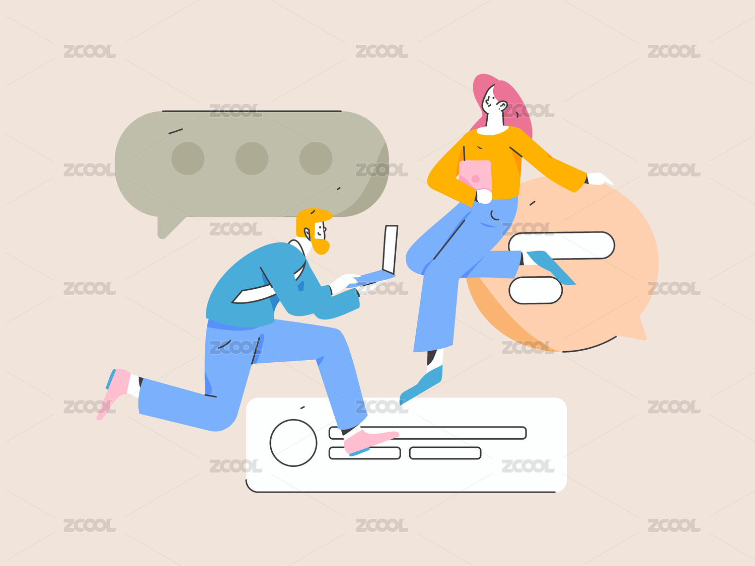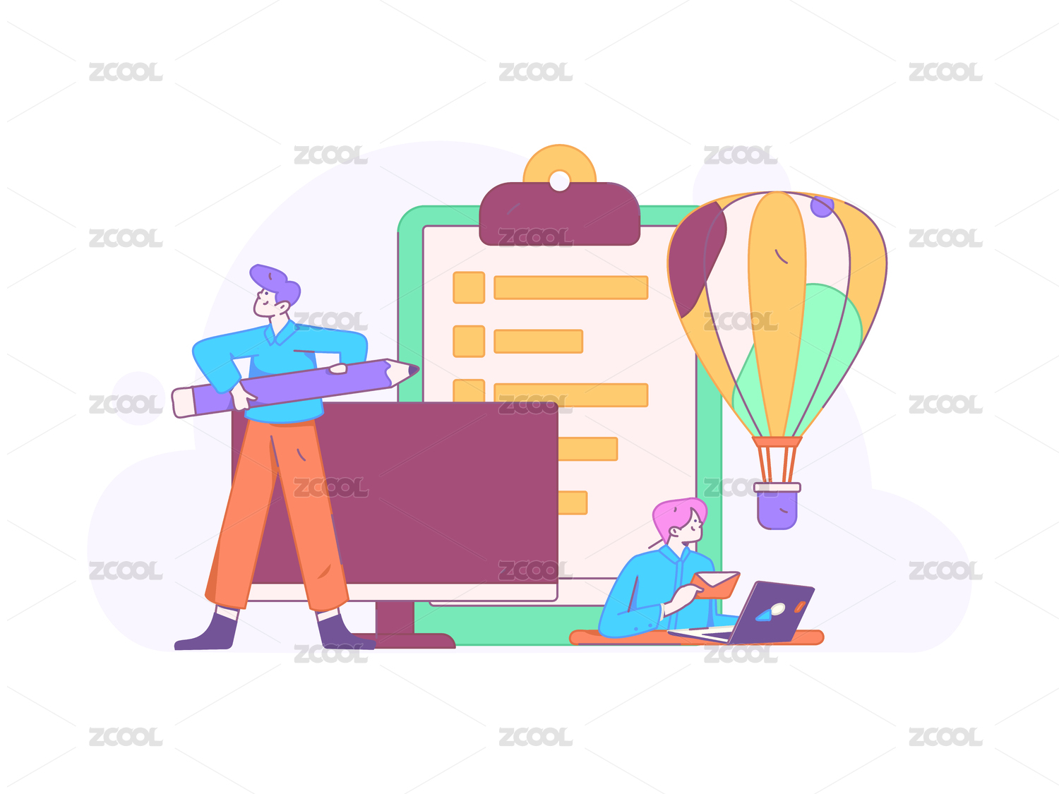 商务人物运营工作场景扁平矢量插画