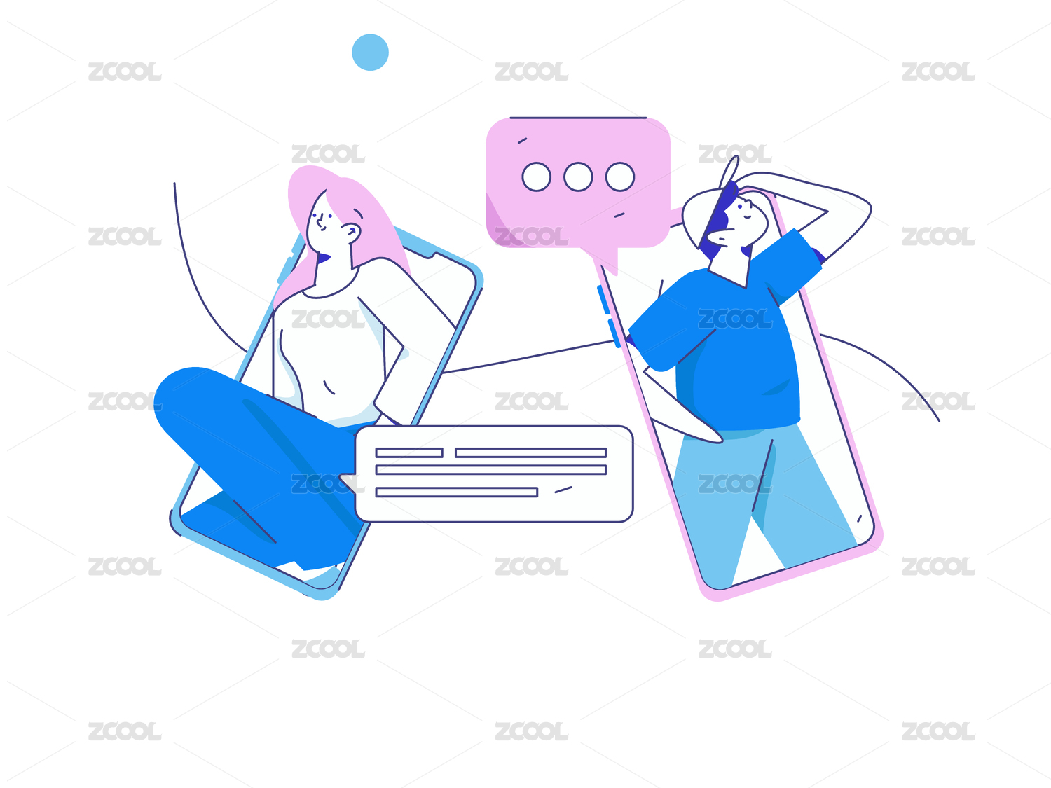 虚拟的人物社交沟通概念商业扁平矢量手绘插