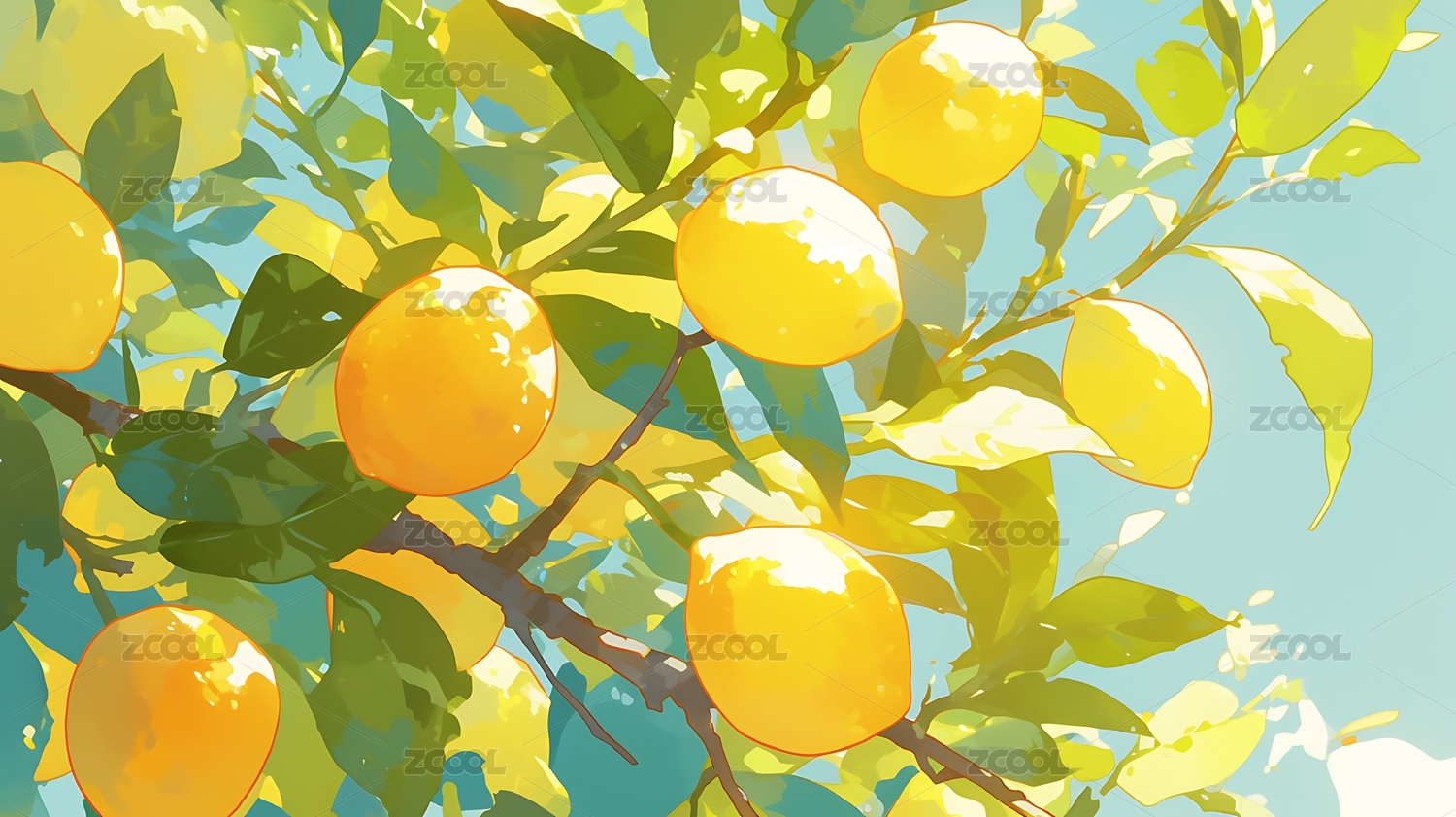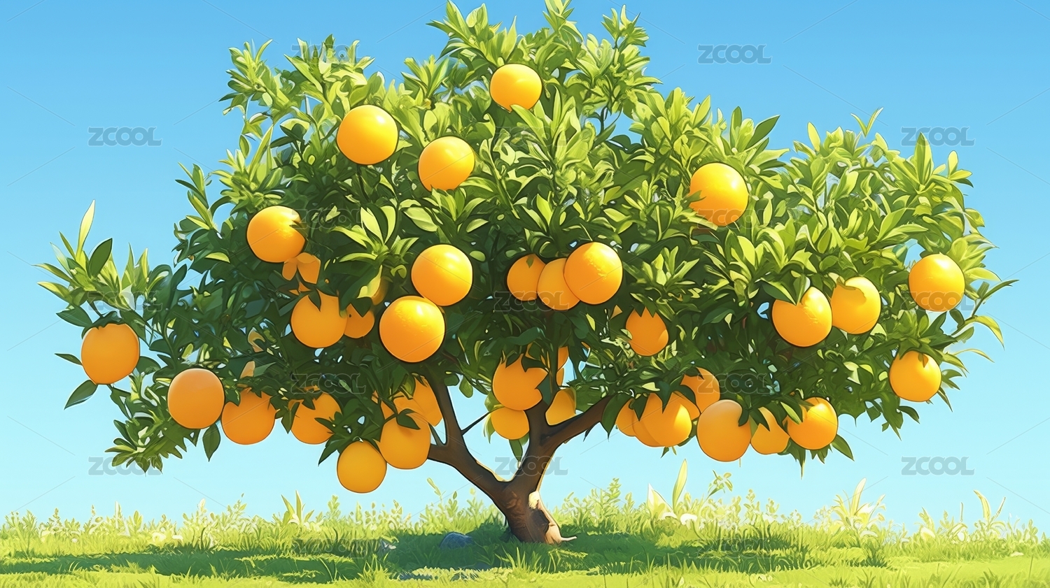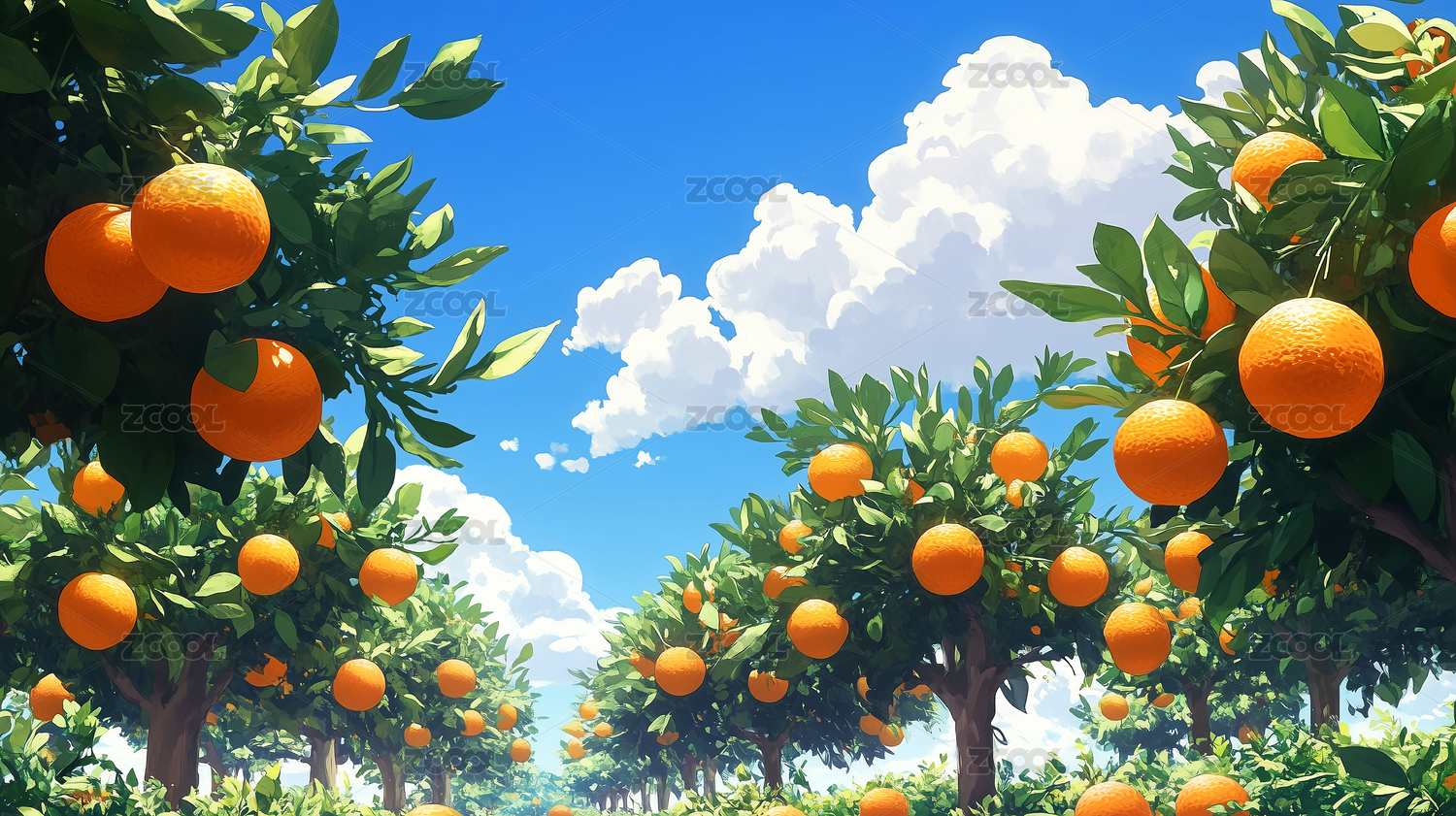 清新橘子树田园插画背景壁纸