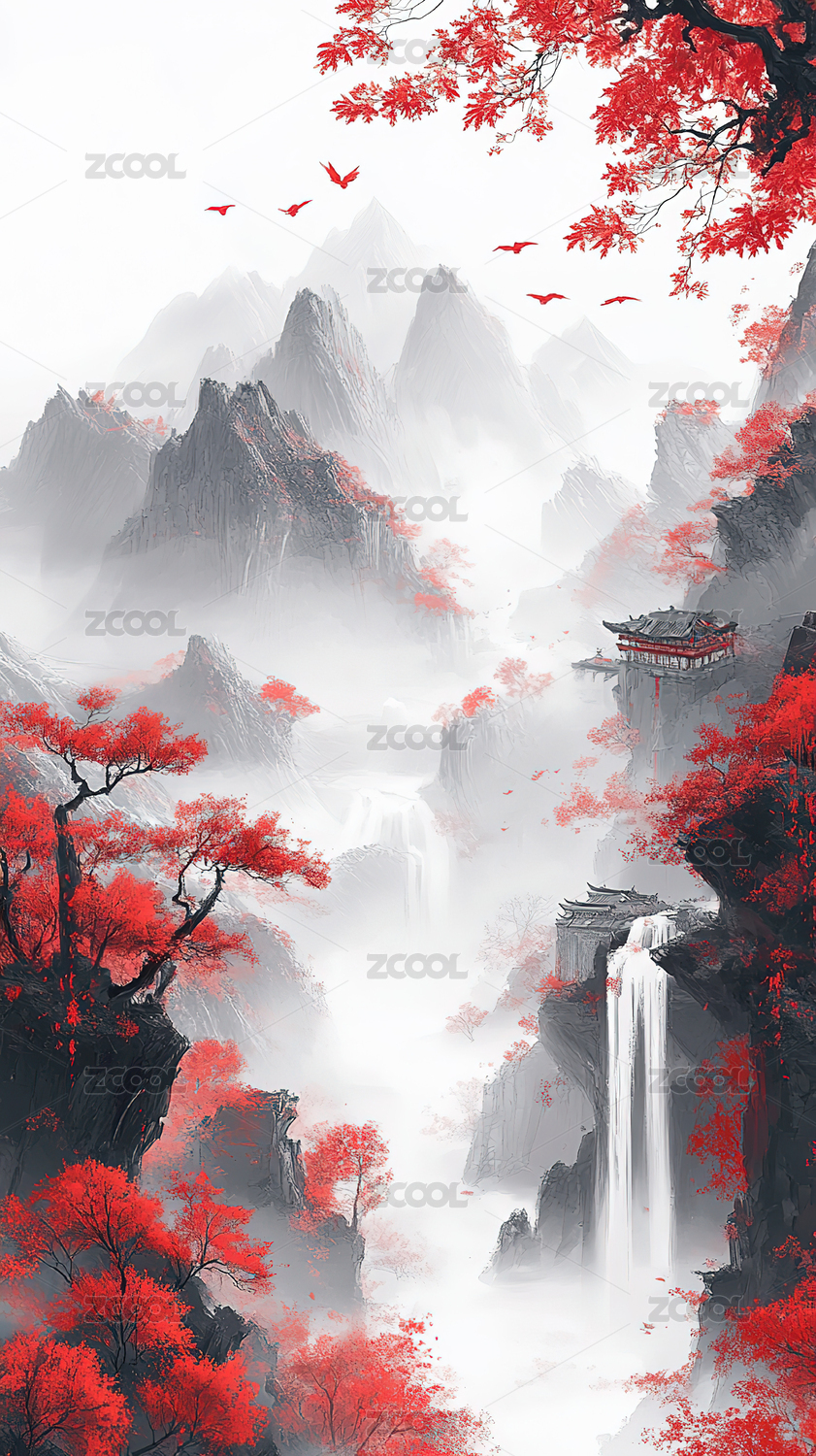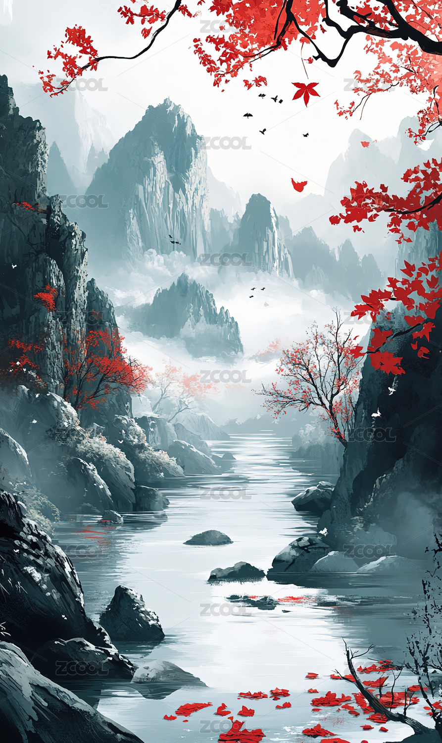 AIGCFG,中国风,水墨,插画,中式风格,山水,风景,山