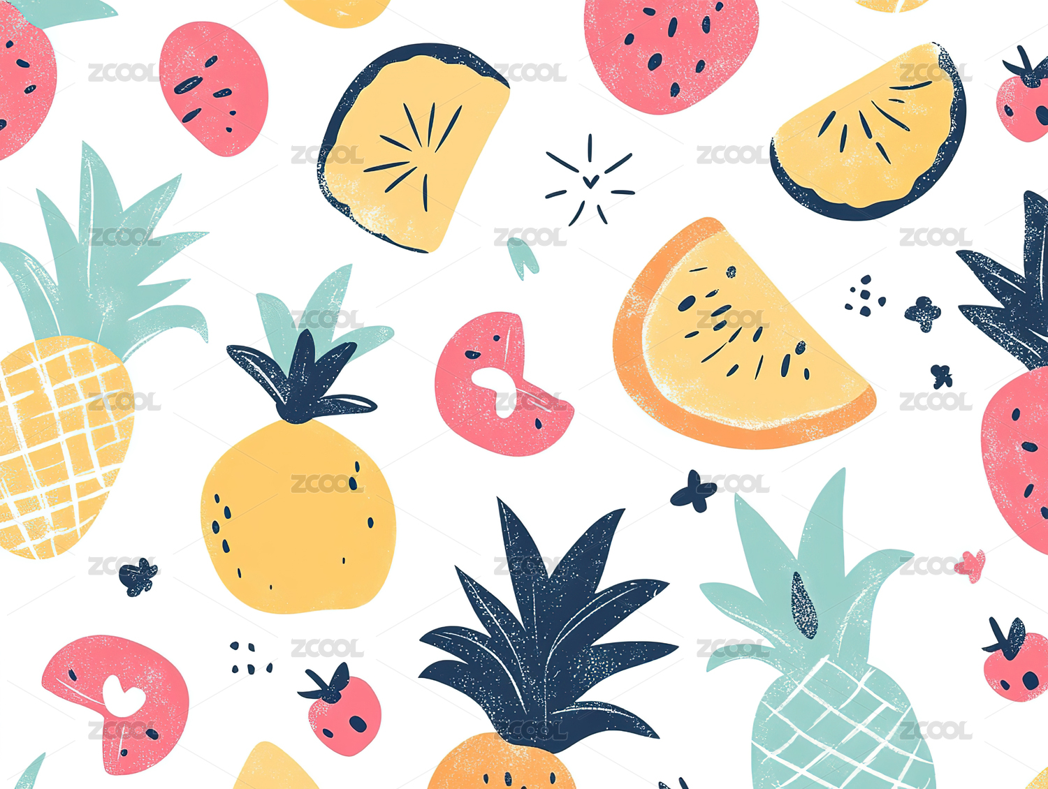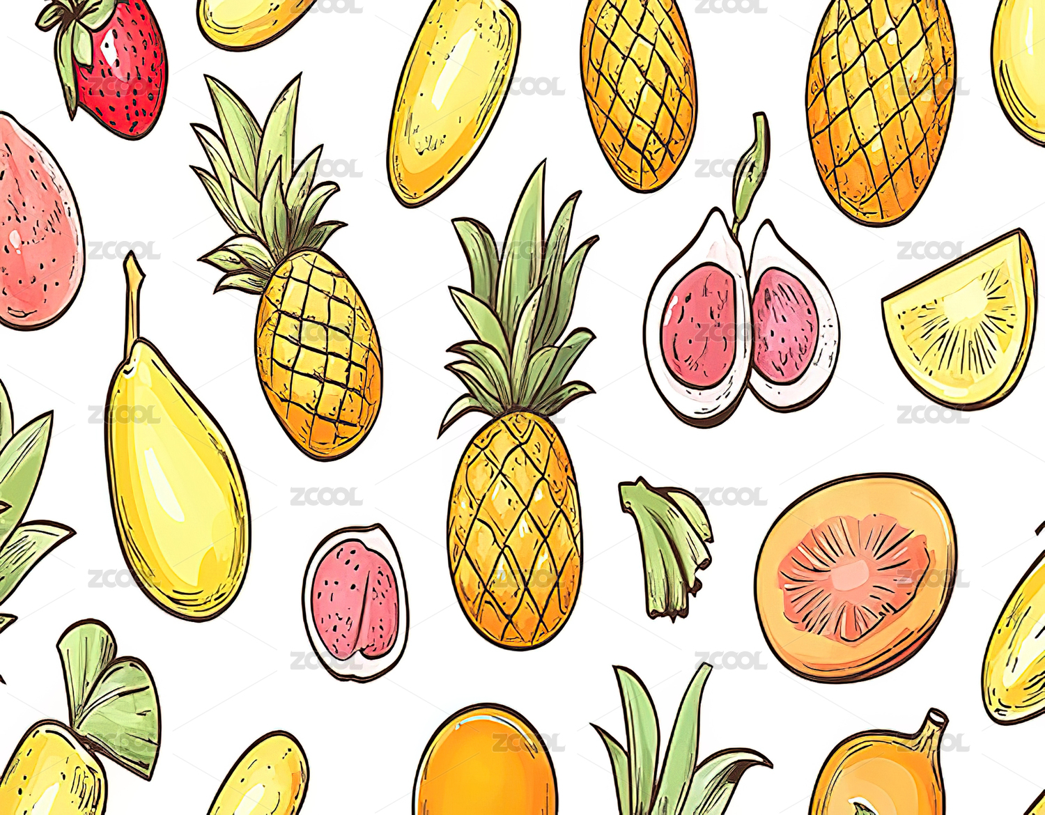 AIGCFG,中式,中国风,国潮风,插画,卡通,菠萝,凤梨,水果