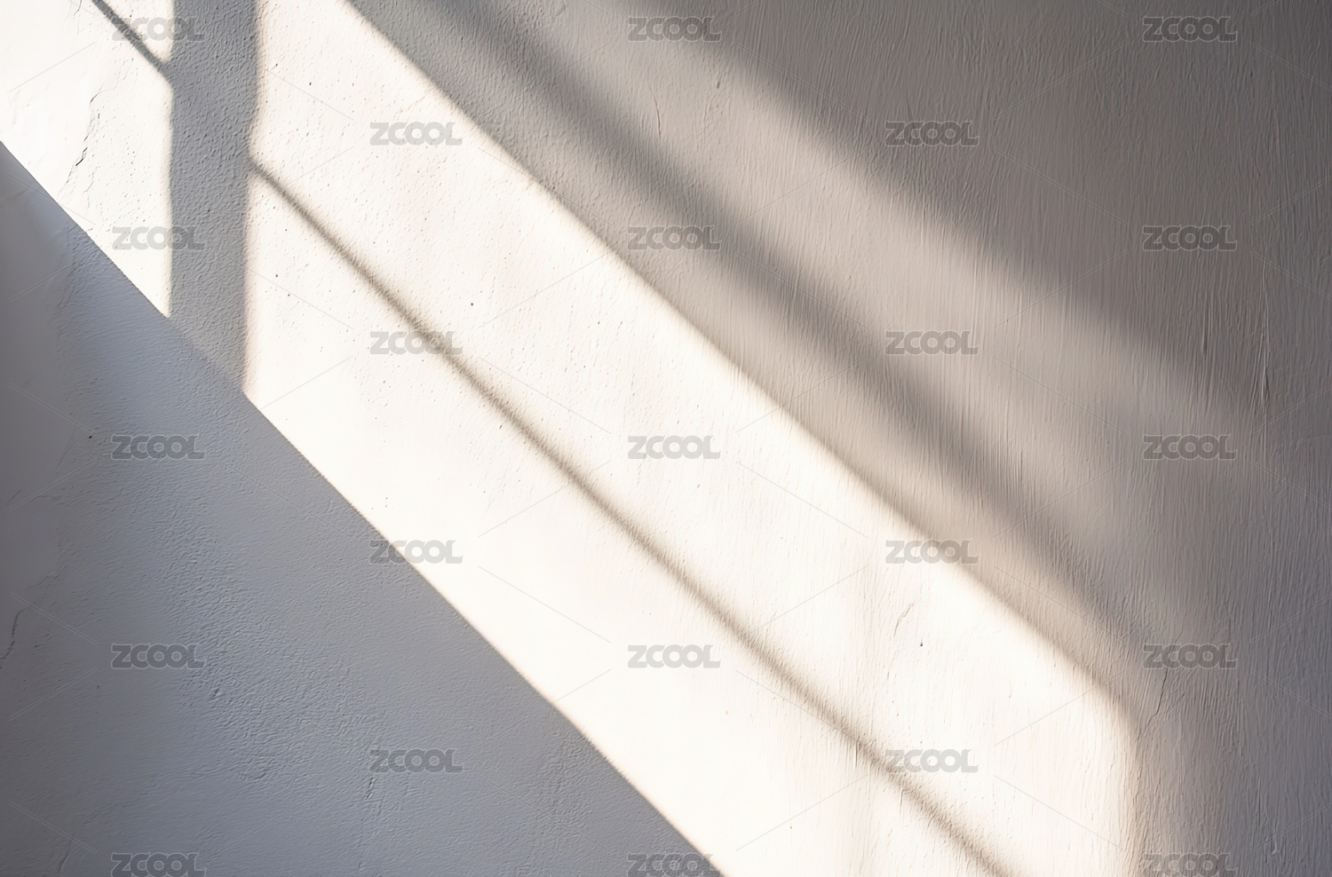 白色粗糙墙壁上自然光线透过窗户照射进来的
