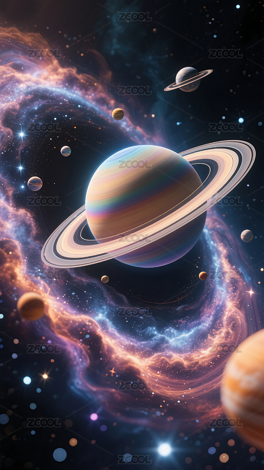 宇宙深处的孤独星球土星环绕的宇宙奇观
