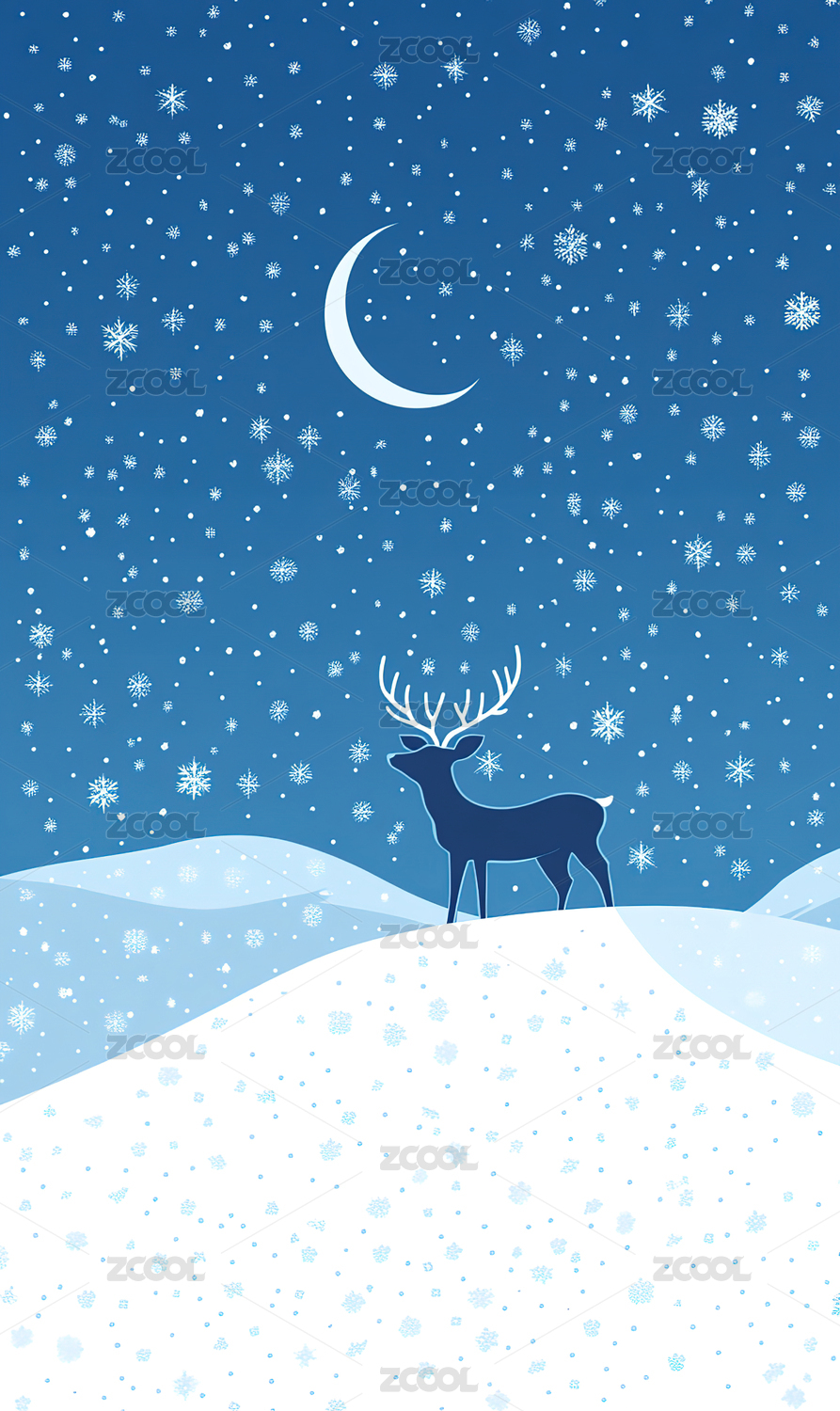 下雪天立冬大雪大寒林海雪原白鹿插画
