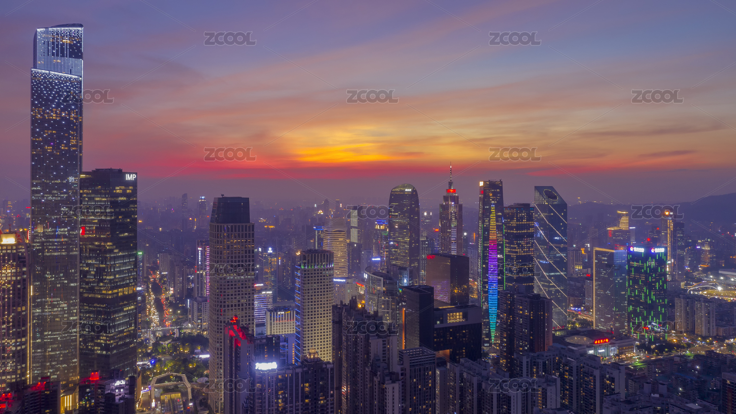 广州,珠江新城,航拍,夜景,晚霞,黄昏,广州塔