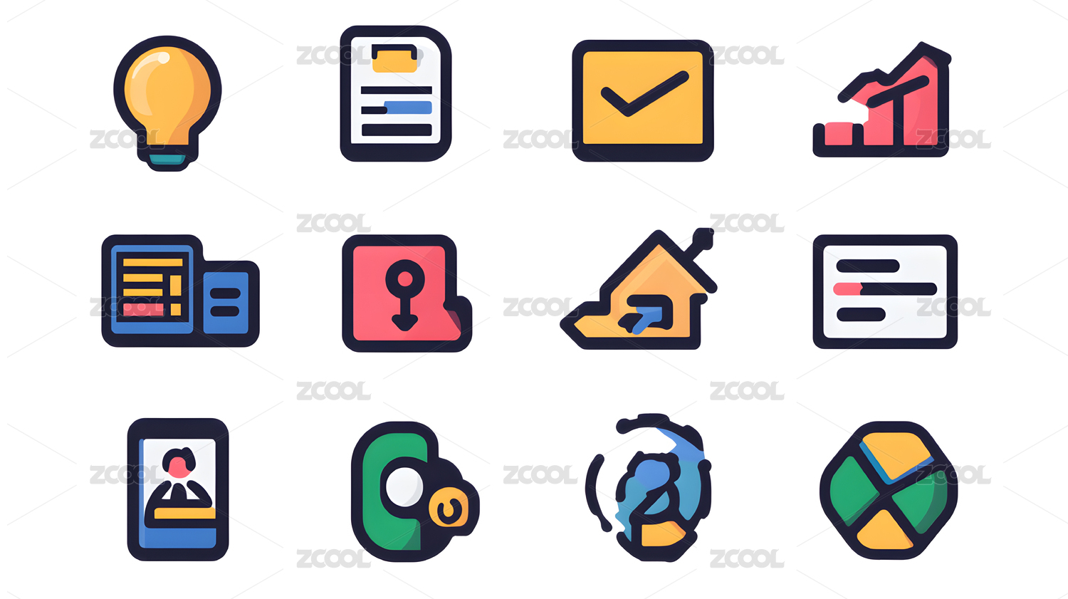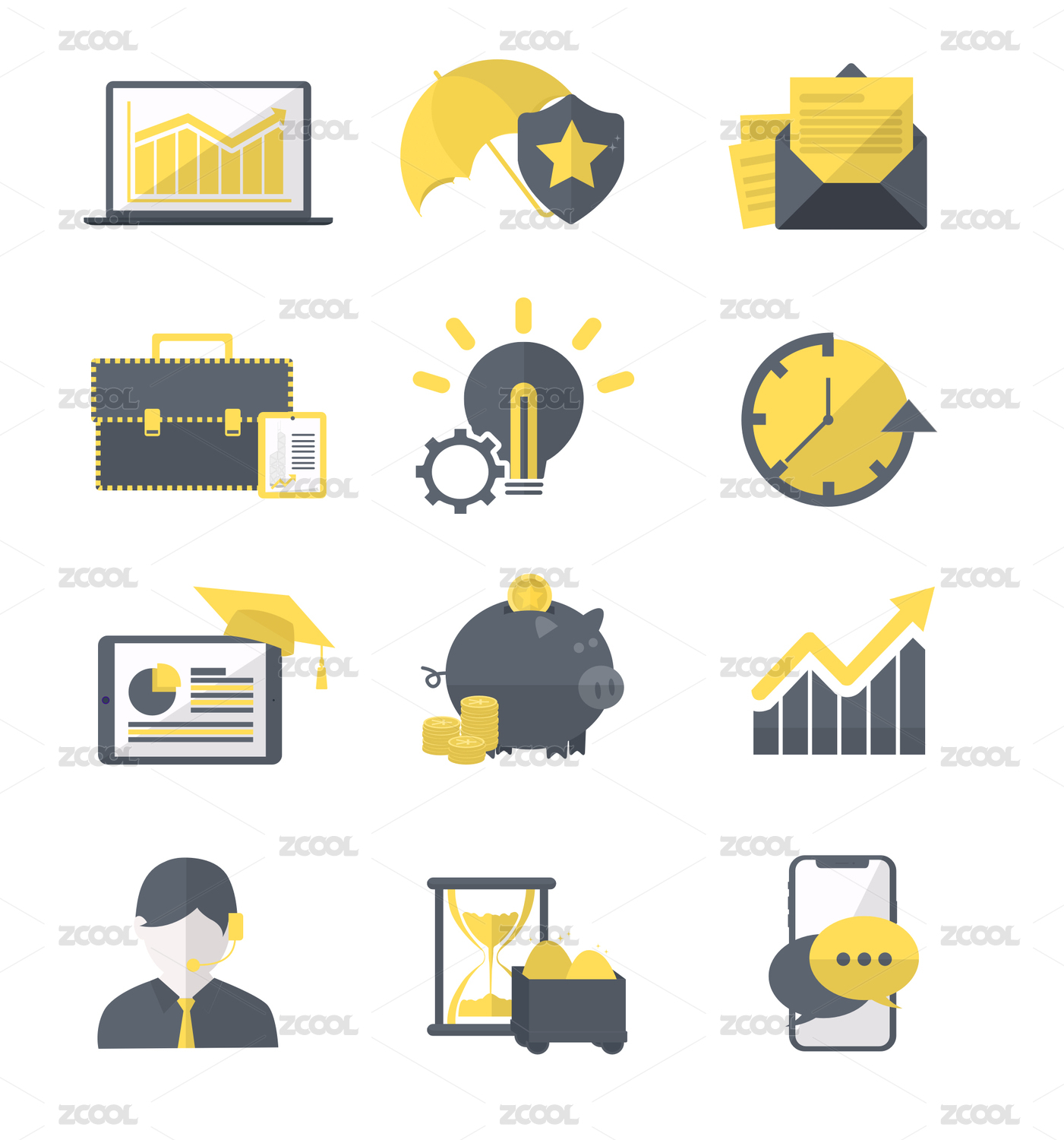 平面设计风格多样化业务图标集