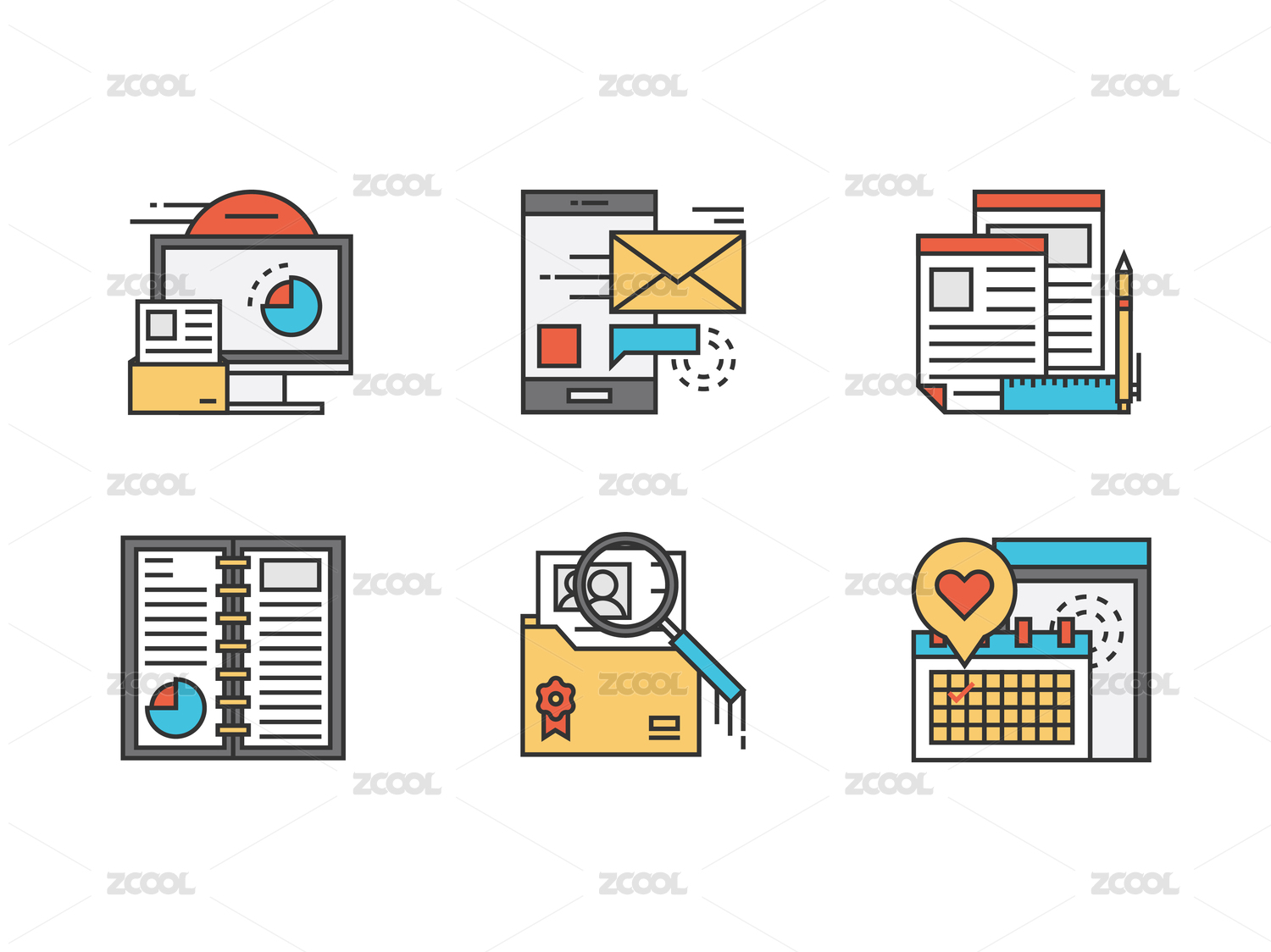 工具类扁平图标6个图标设计