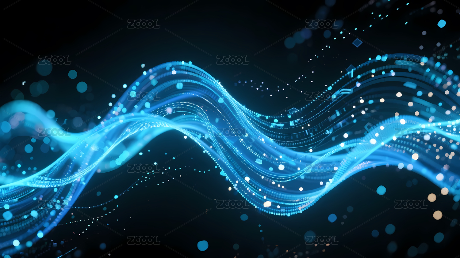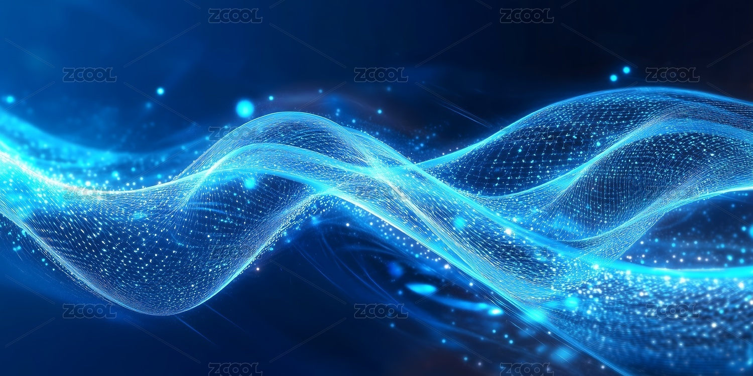 蓝光流动波线点缀
