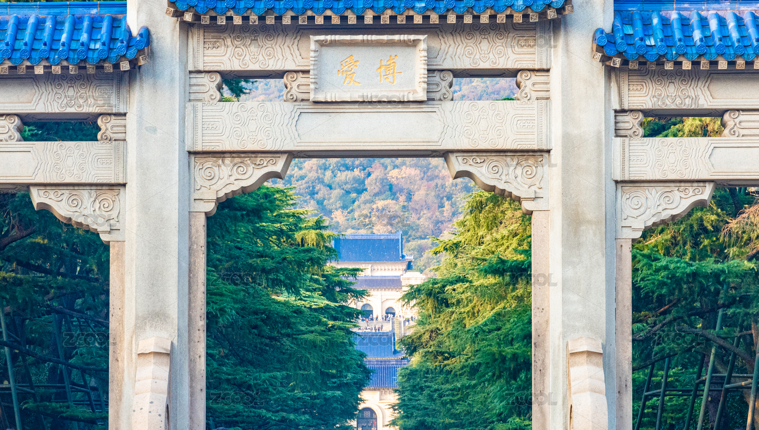 清晨的南京中山陵入口前的博爱牌坊建筑景观