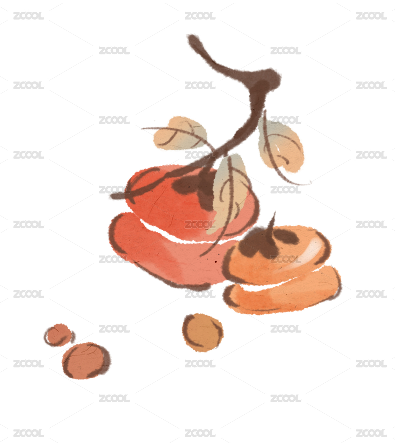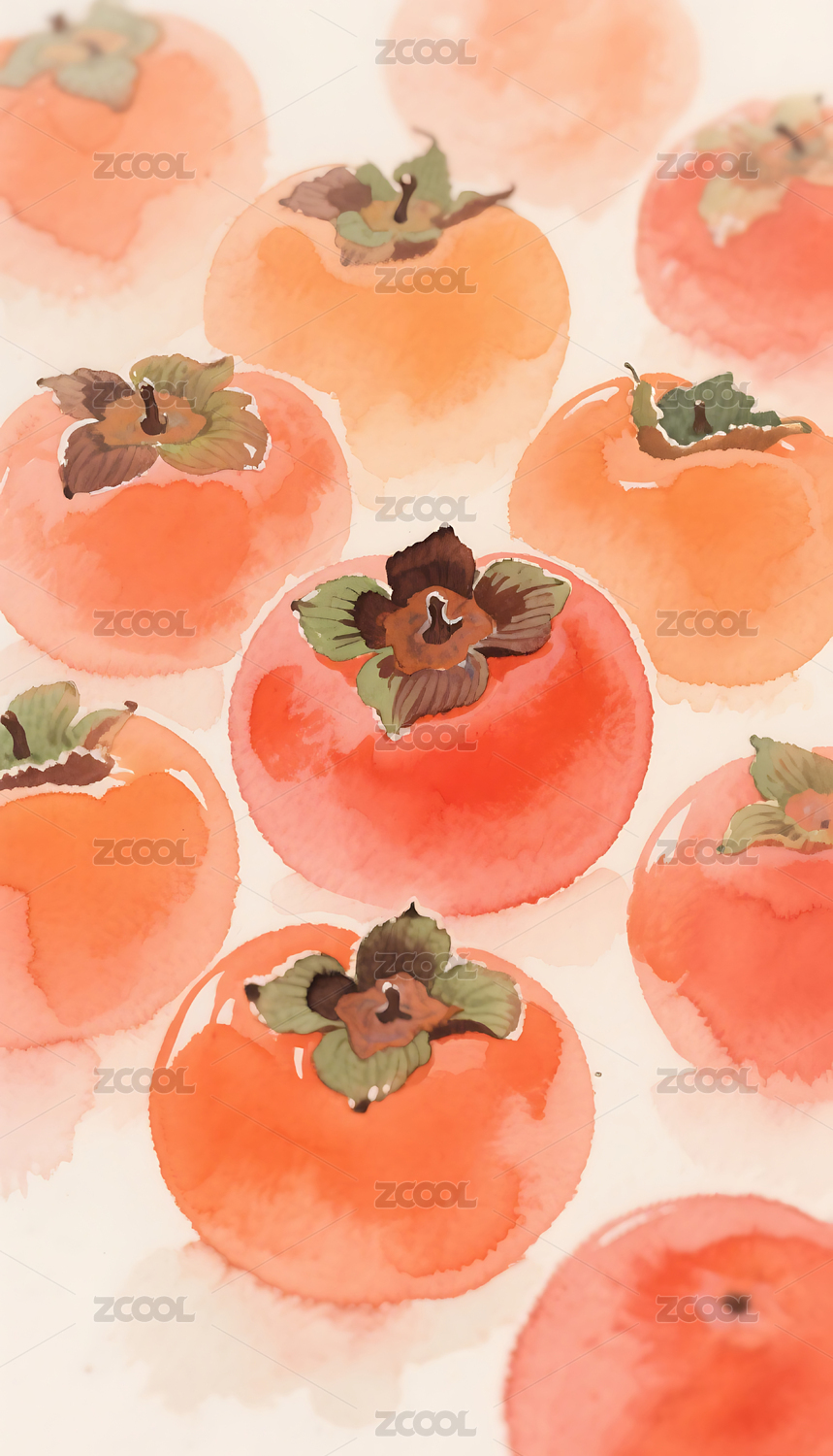 柿子水彩插画风格