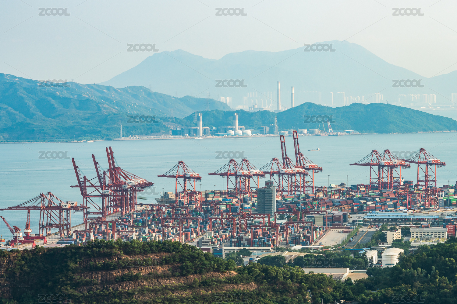 深圳蛇口港口赤湾港和海面上行驶的一艘货轮