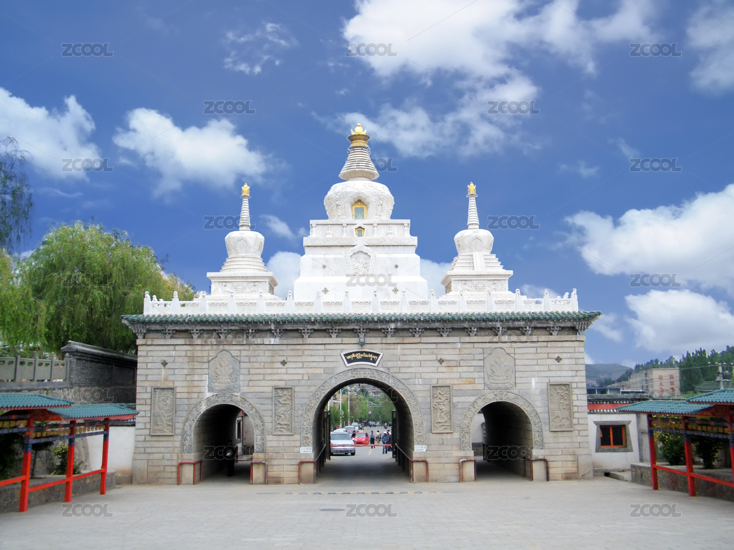 中国青海西宁塔尔寺景区正门白塔
