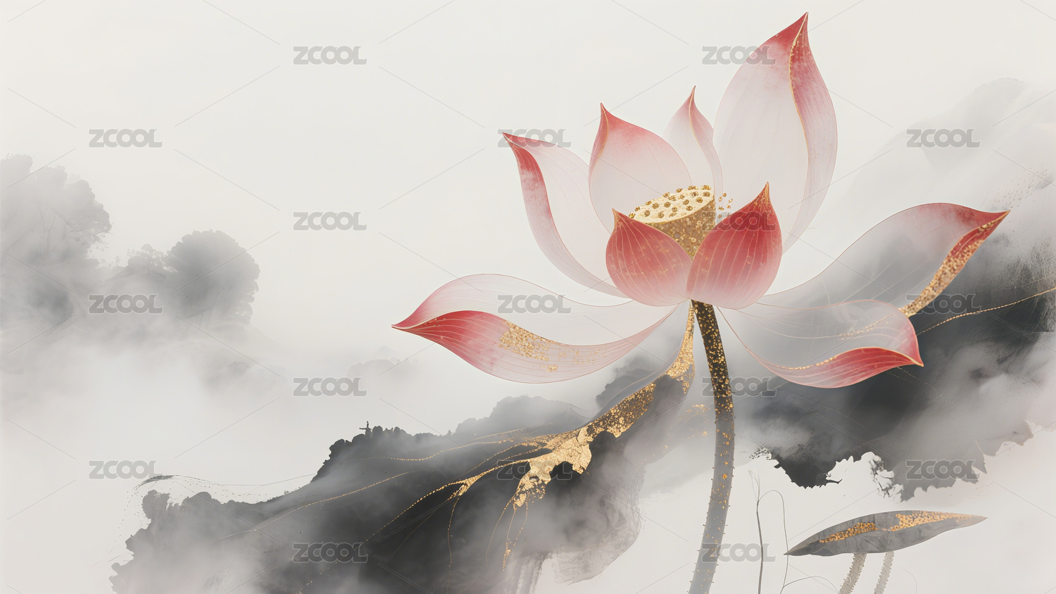 水墨莲花意境图