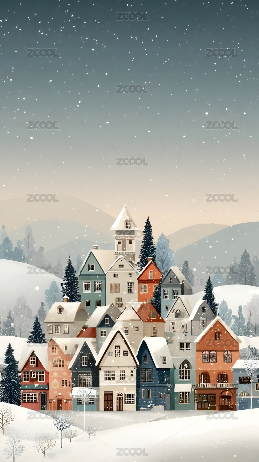 冬天冬季冰天雪地雪景圣诞节日插画背景