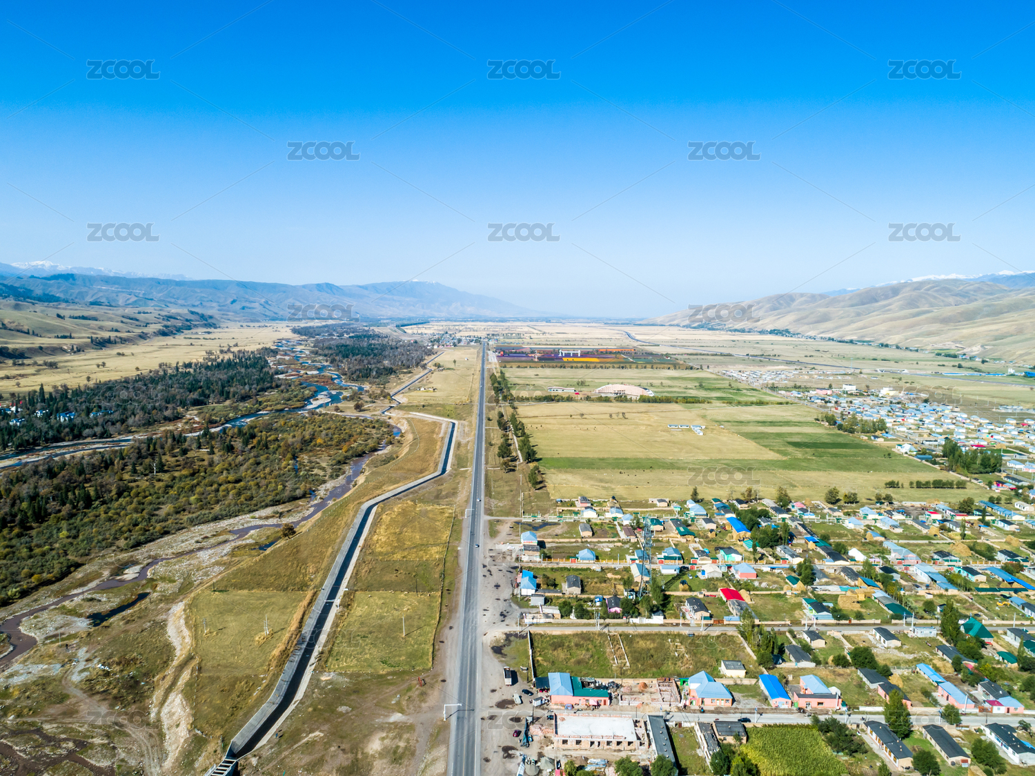 中国新疆伊犁库尔德宁镇航拍自然风光