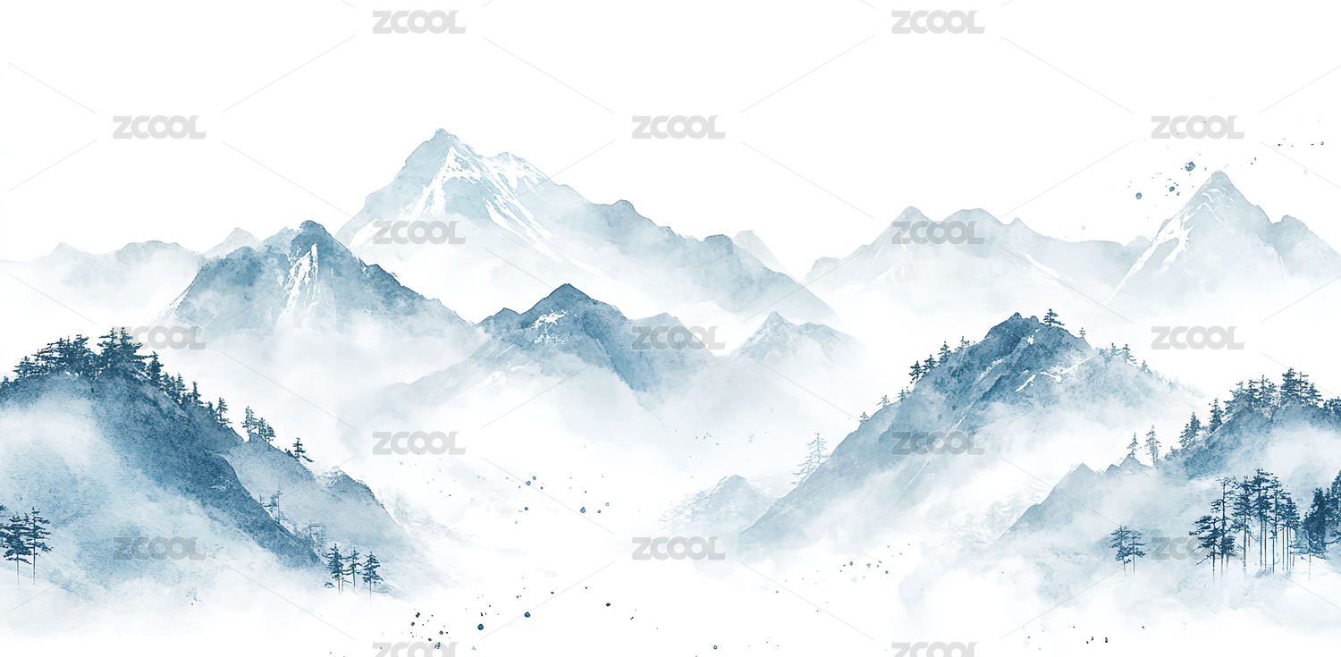 中国风山间云雾唯美水墨风景插画