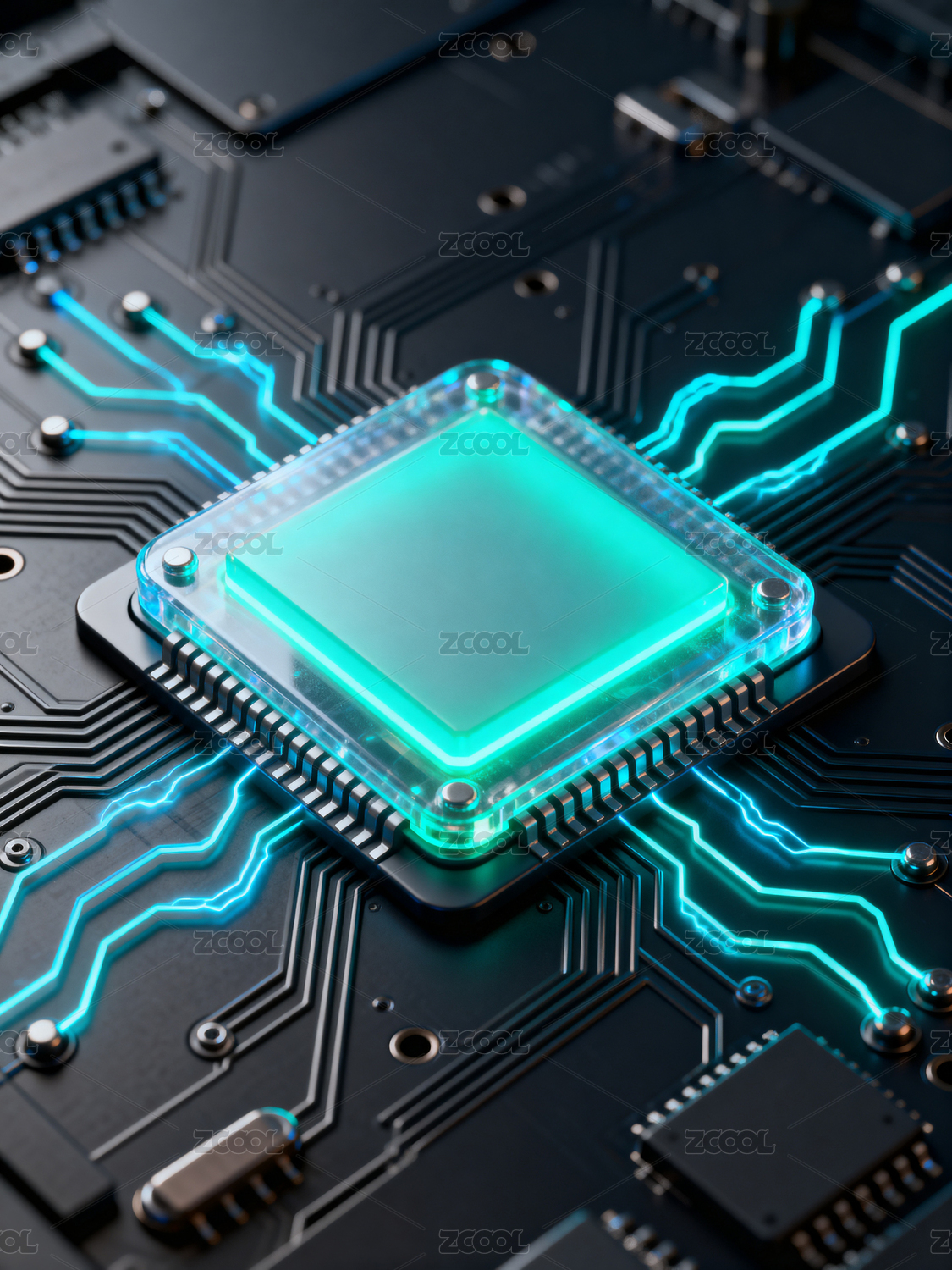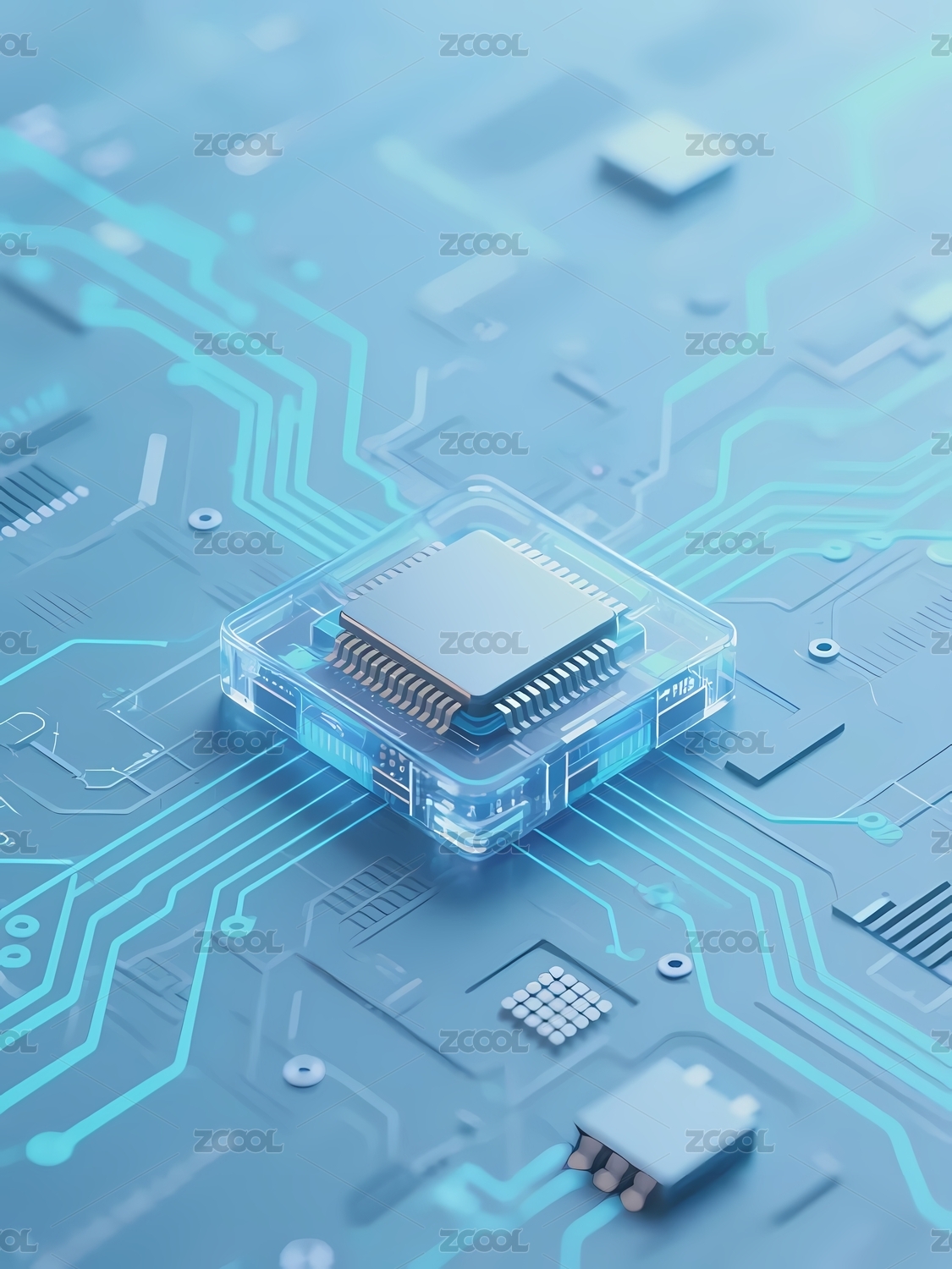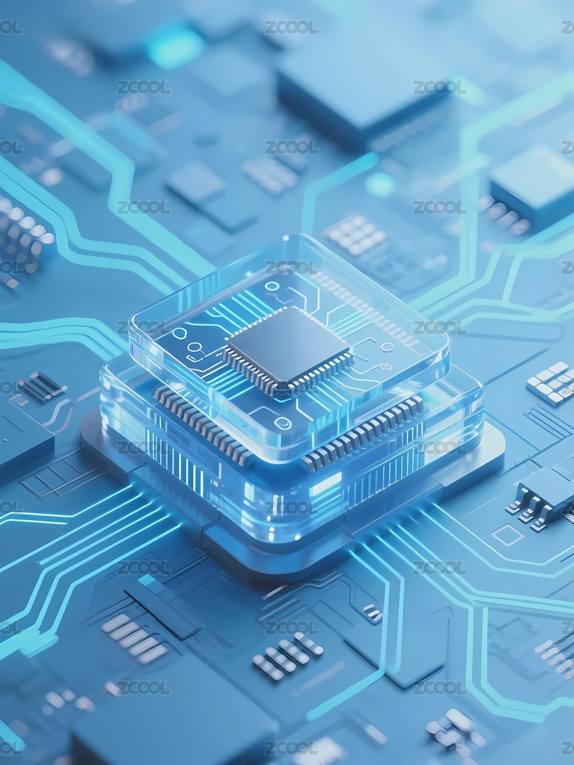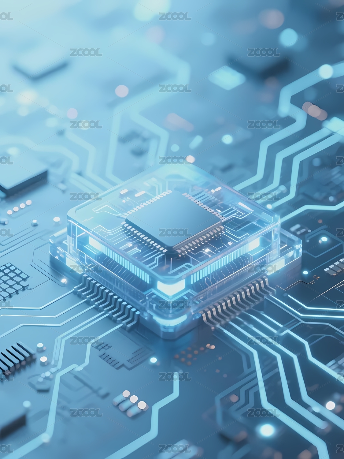 透明芯片与电路板的科技构图
