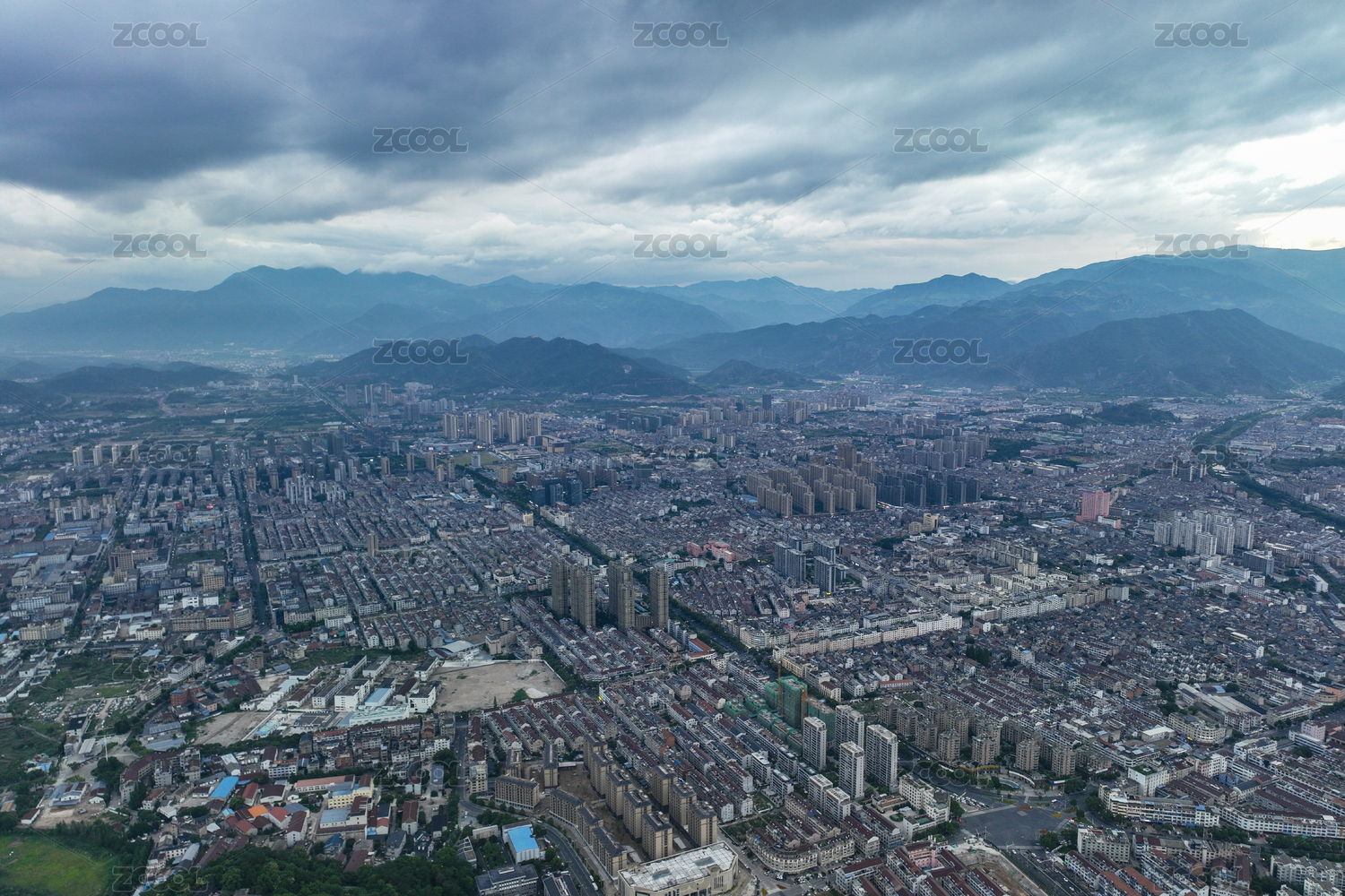 航拍城市风光与群山