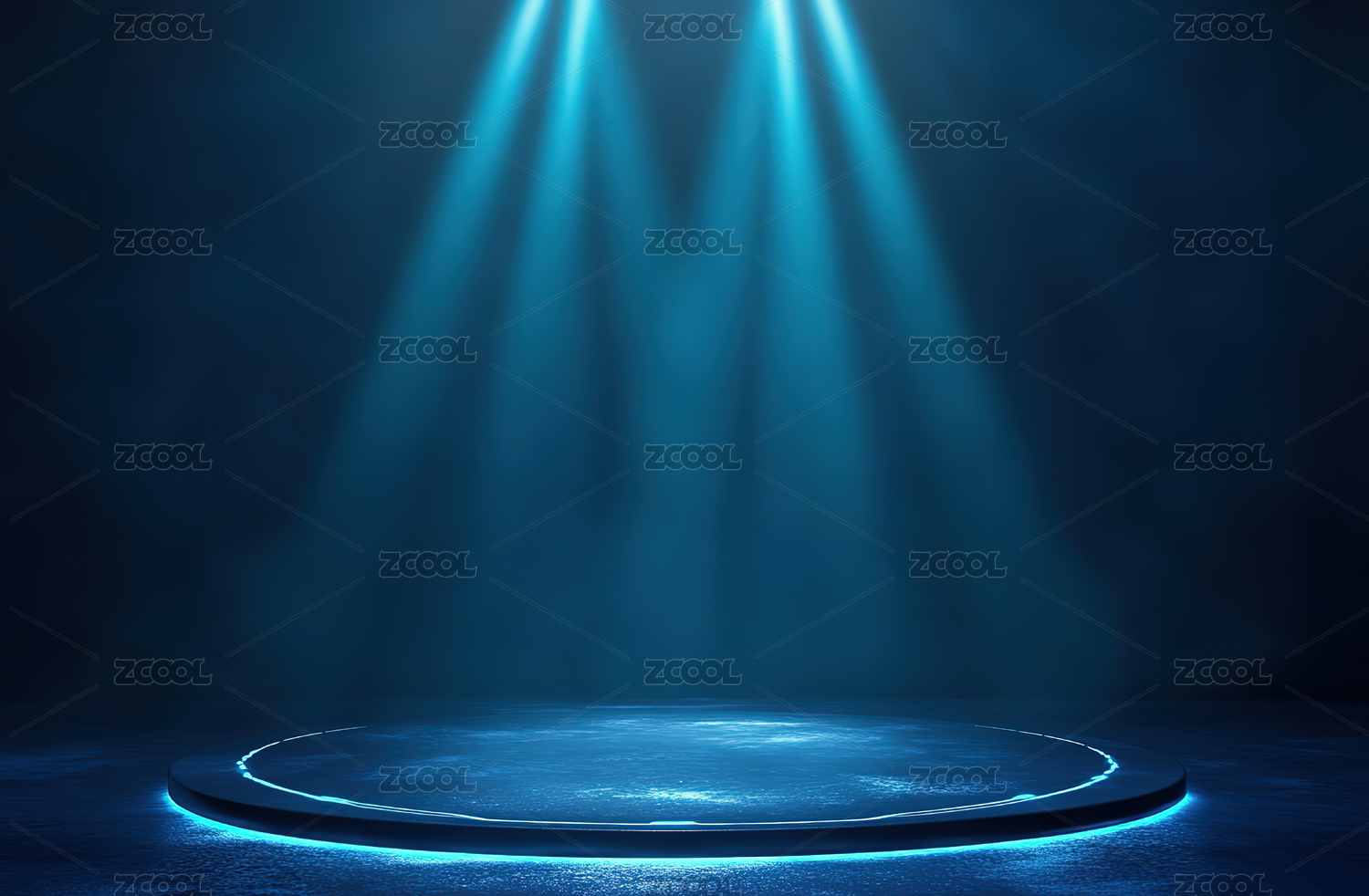 蓝色聚光灯下的圆形舞台背景