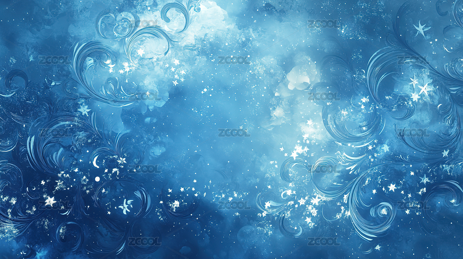 雪花在柔和的蓝色渐变背景上,圣诞节主题