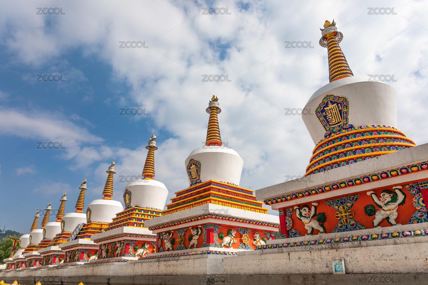天空下青海省湟中塔尔寺入口处的的白色菩提塔