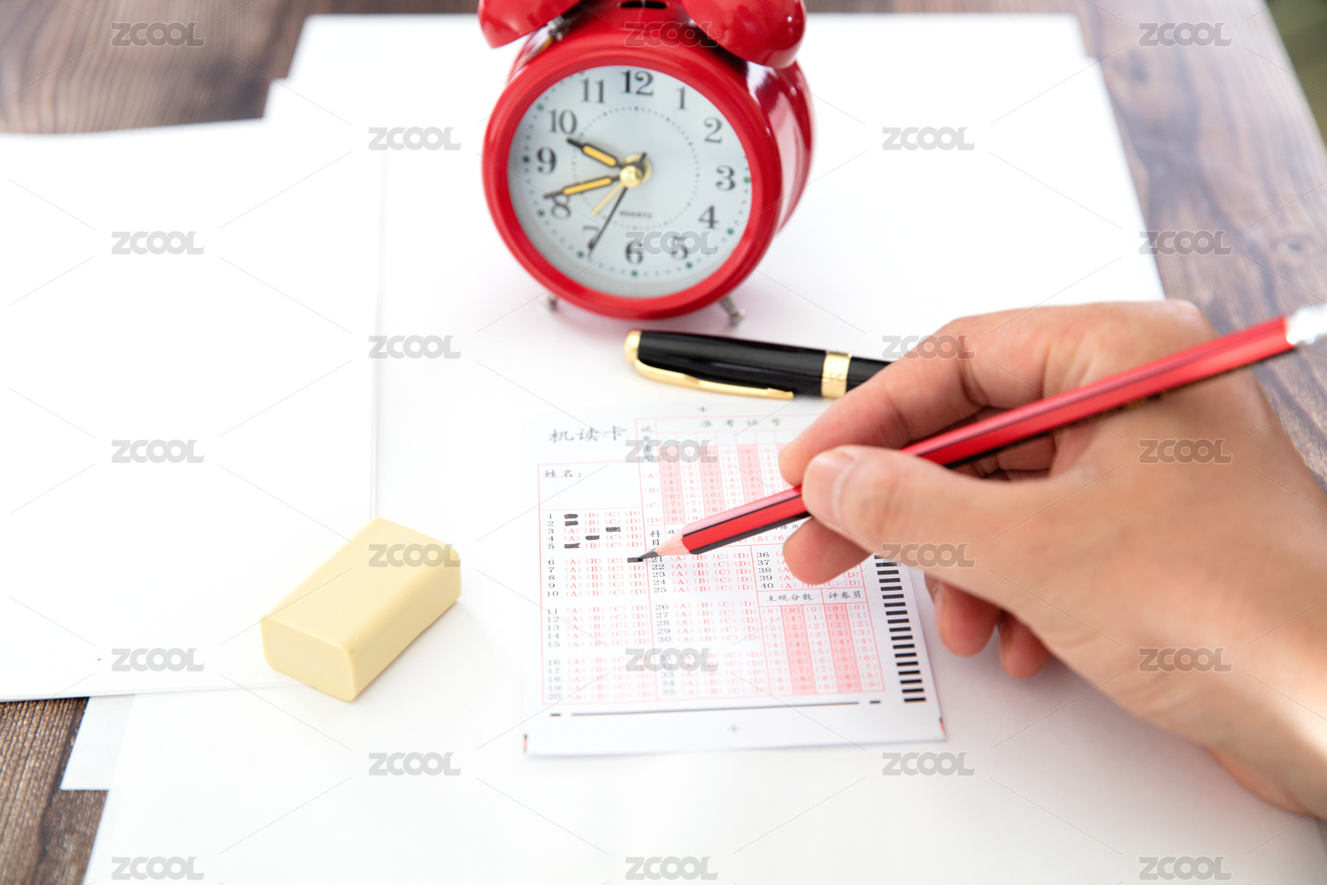高考的答题卡铅笔和闹钟