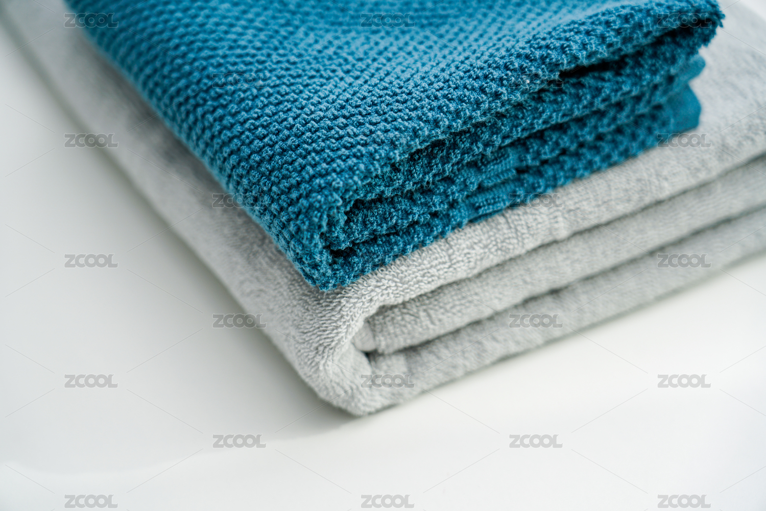 两条情侣款毛巾放在白色桌面上
