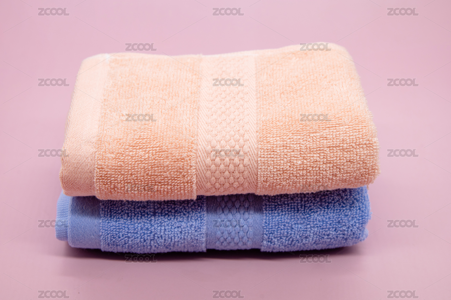 粉色背景生活用品两条纯棉毛巾