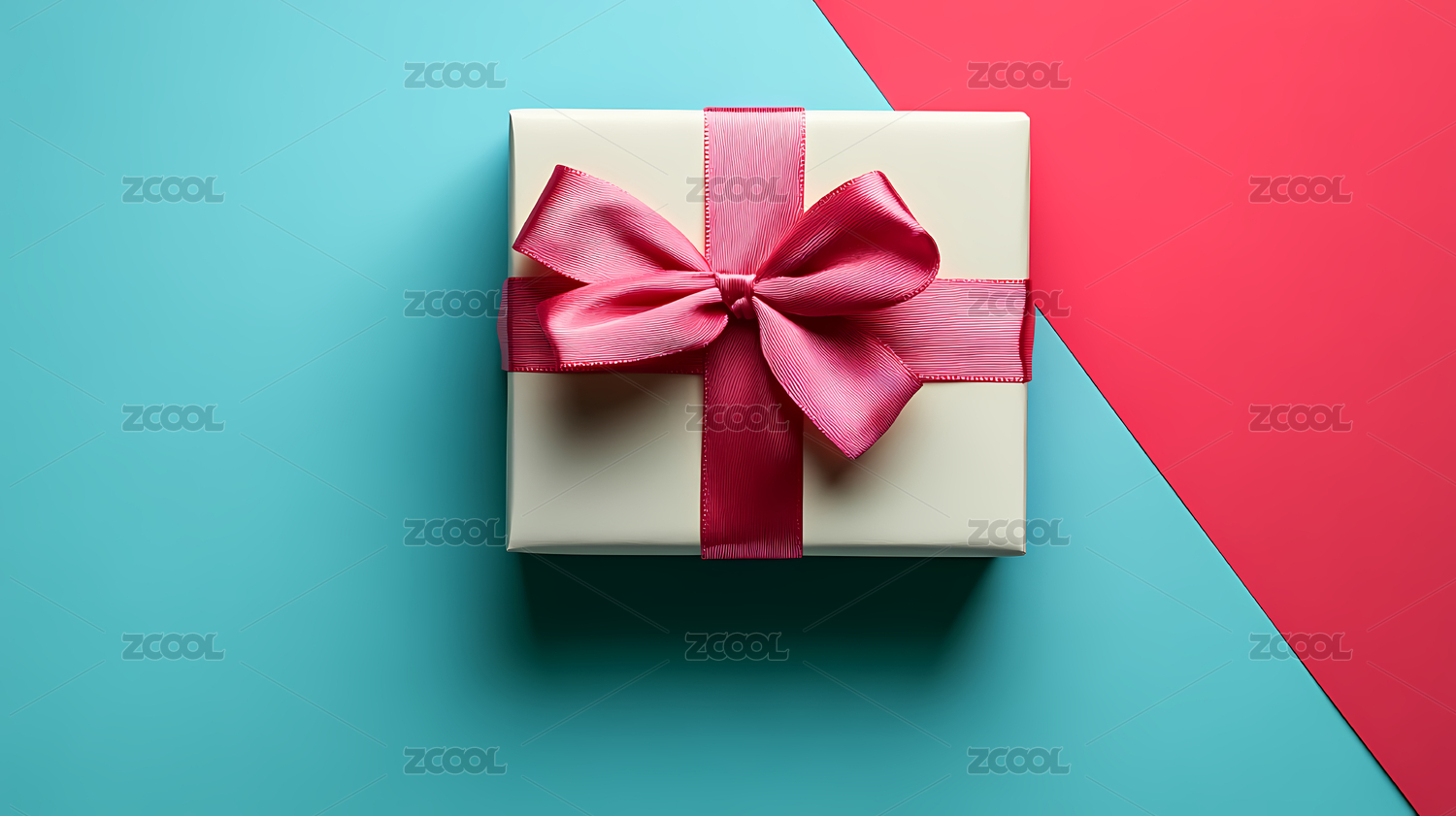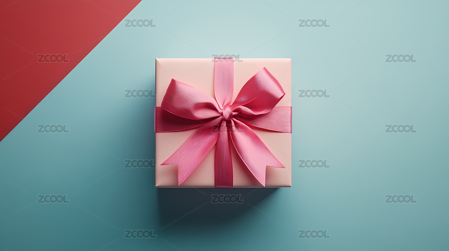 一个粉色礼盒带着蝴蝶结在红色背景上