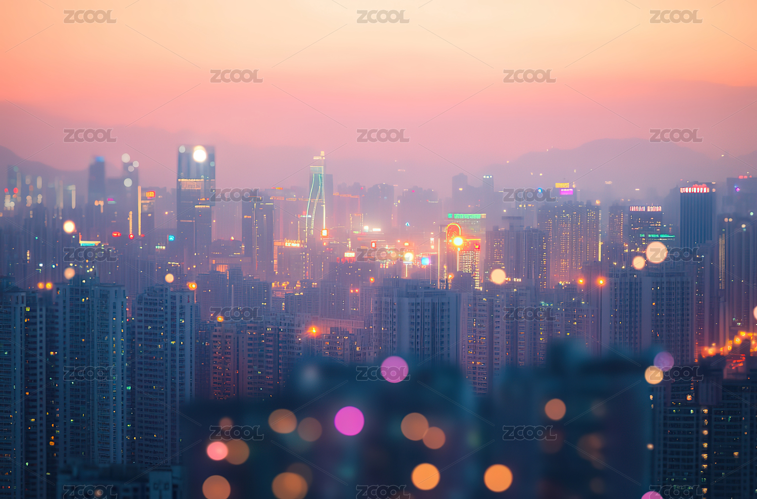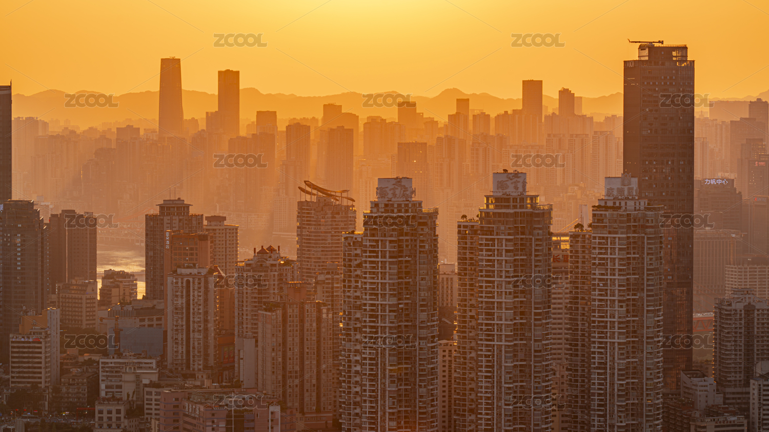 斜阳下在重庆鸿恩寺森林公园远眺城市中心