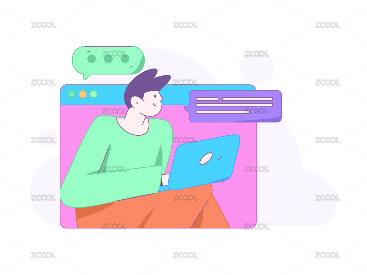 白领男子通过电脑查看邮件获取更多信息,概念插画