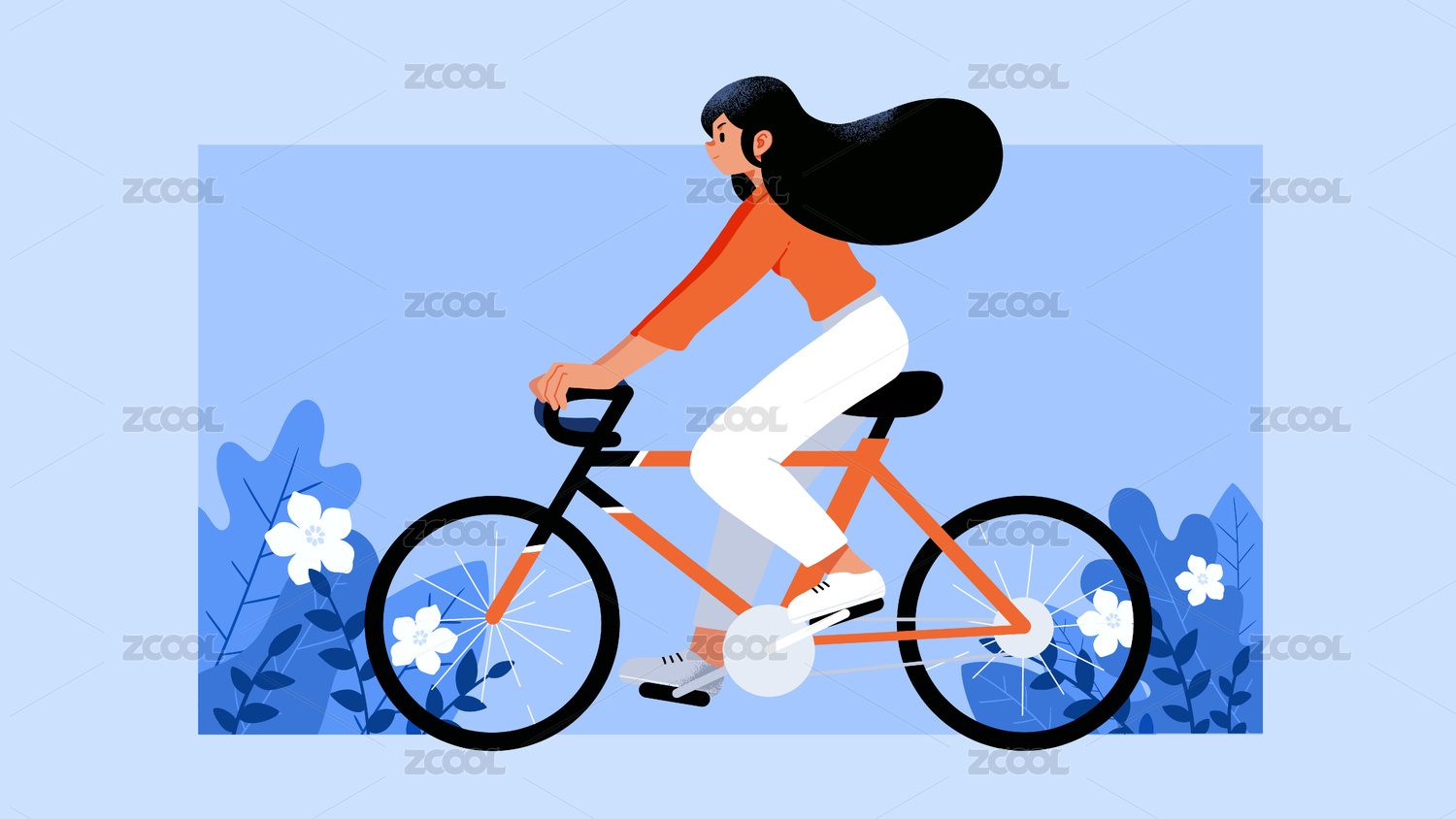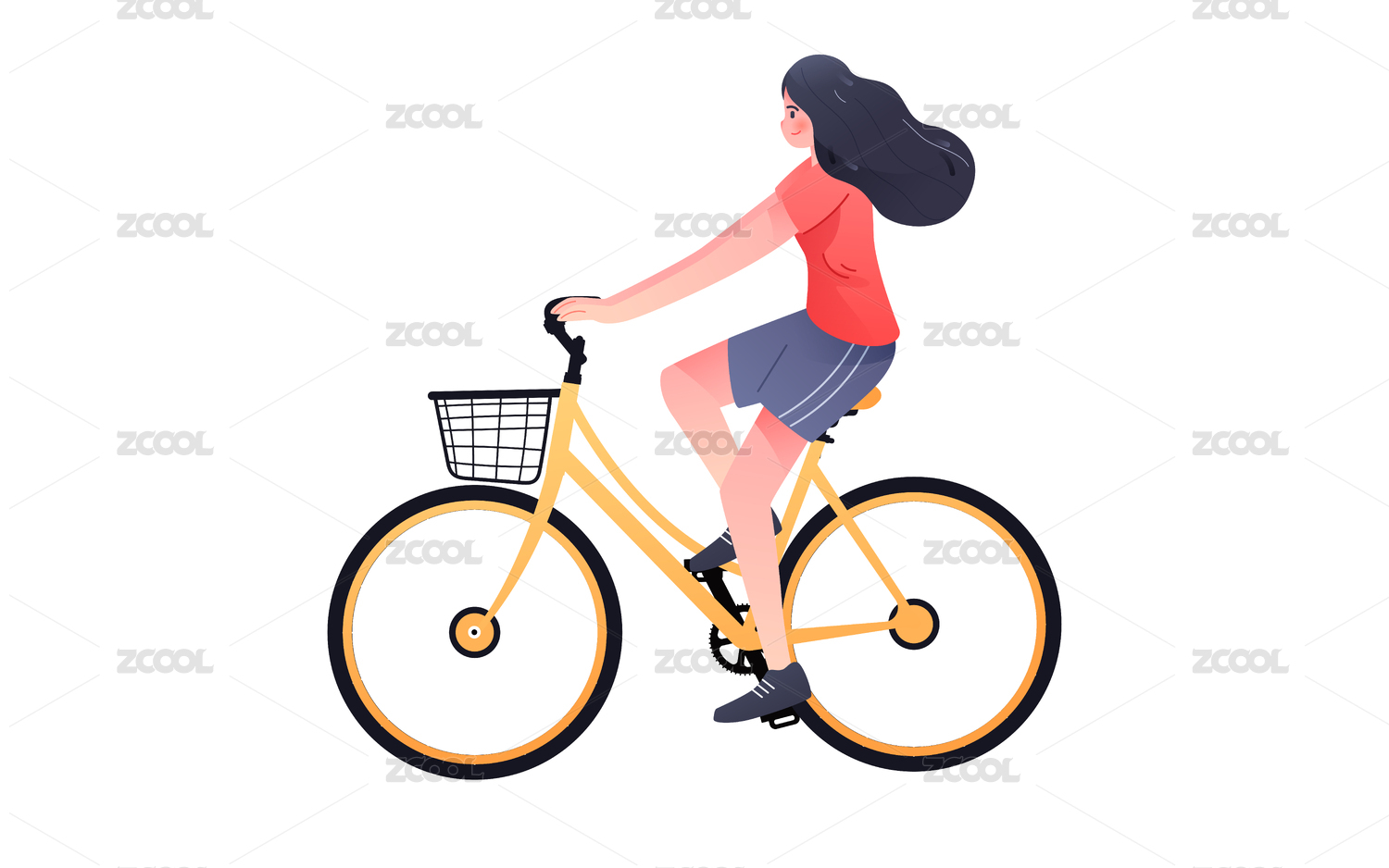 可爱短发女孩健身世界骑行日骑自行车的人元素