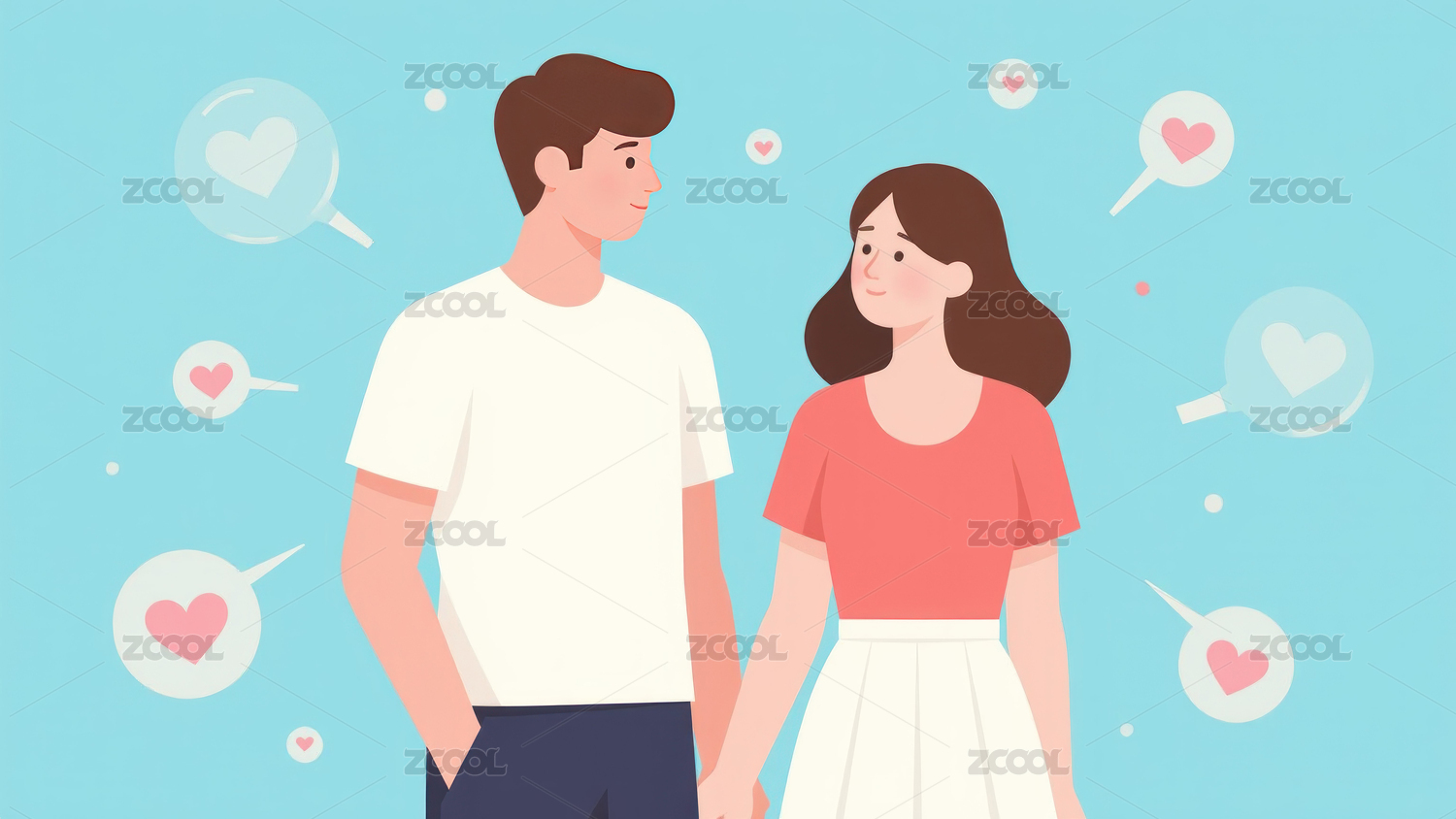情侣对视纯色背景简约插画