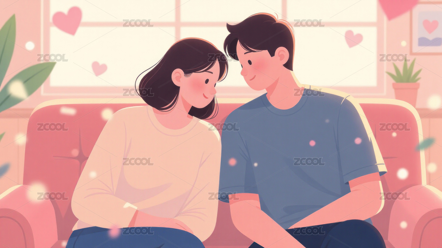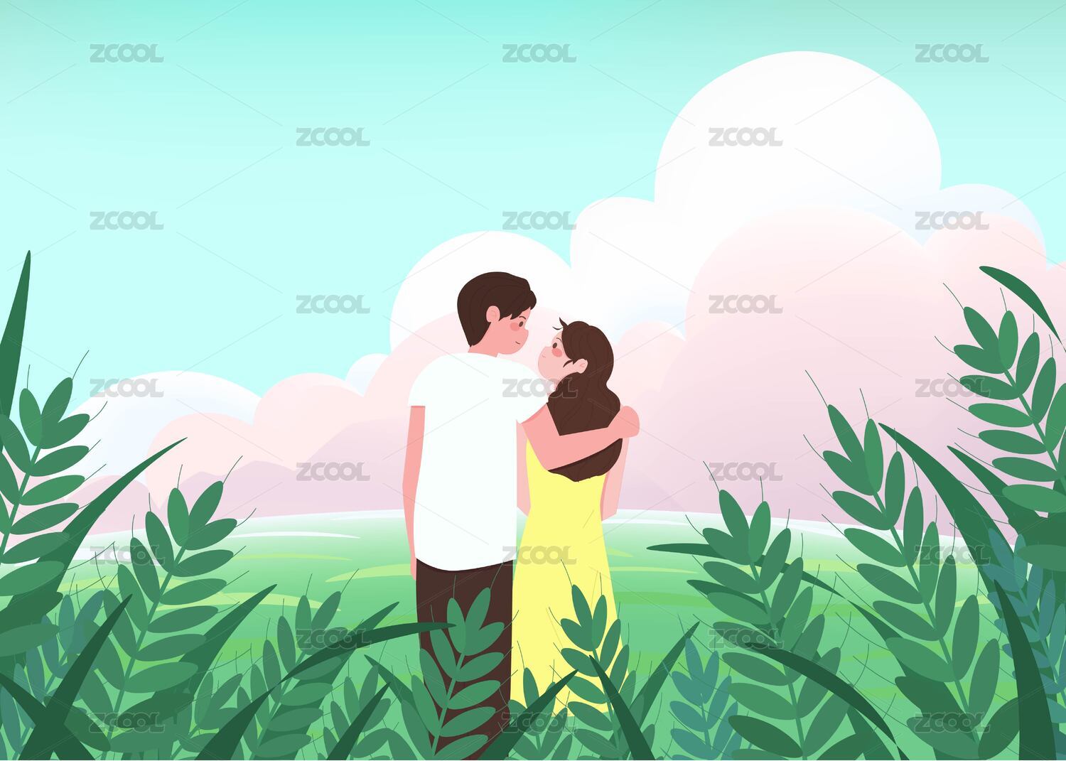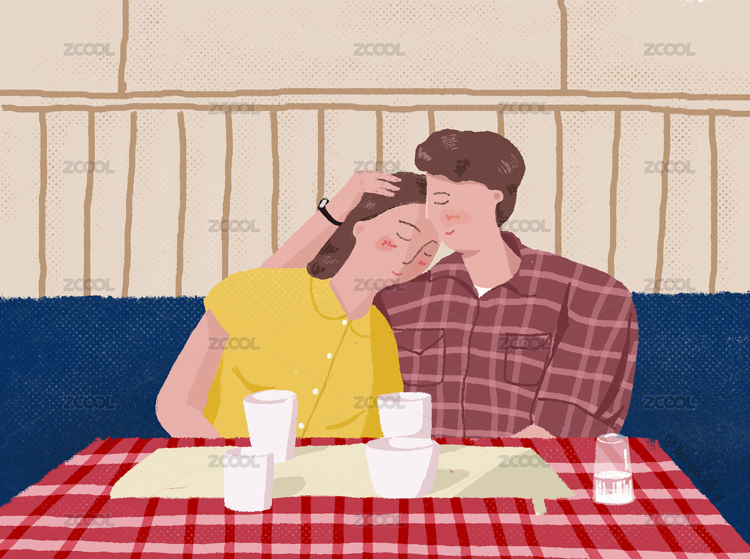 情侣温馨约会插画