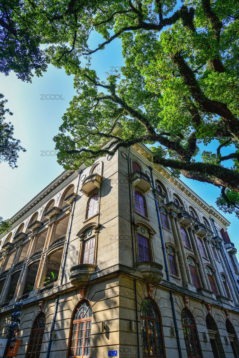 风光,广州,租界,光影,欧式,洋房,老建筑,阳光,建筑,大树
