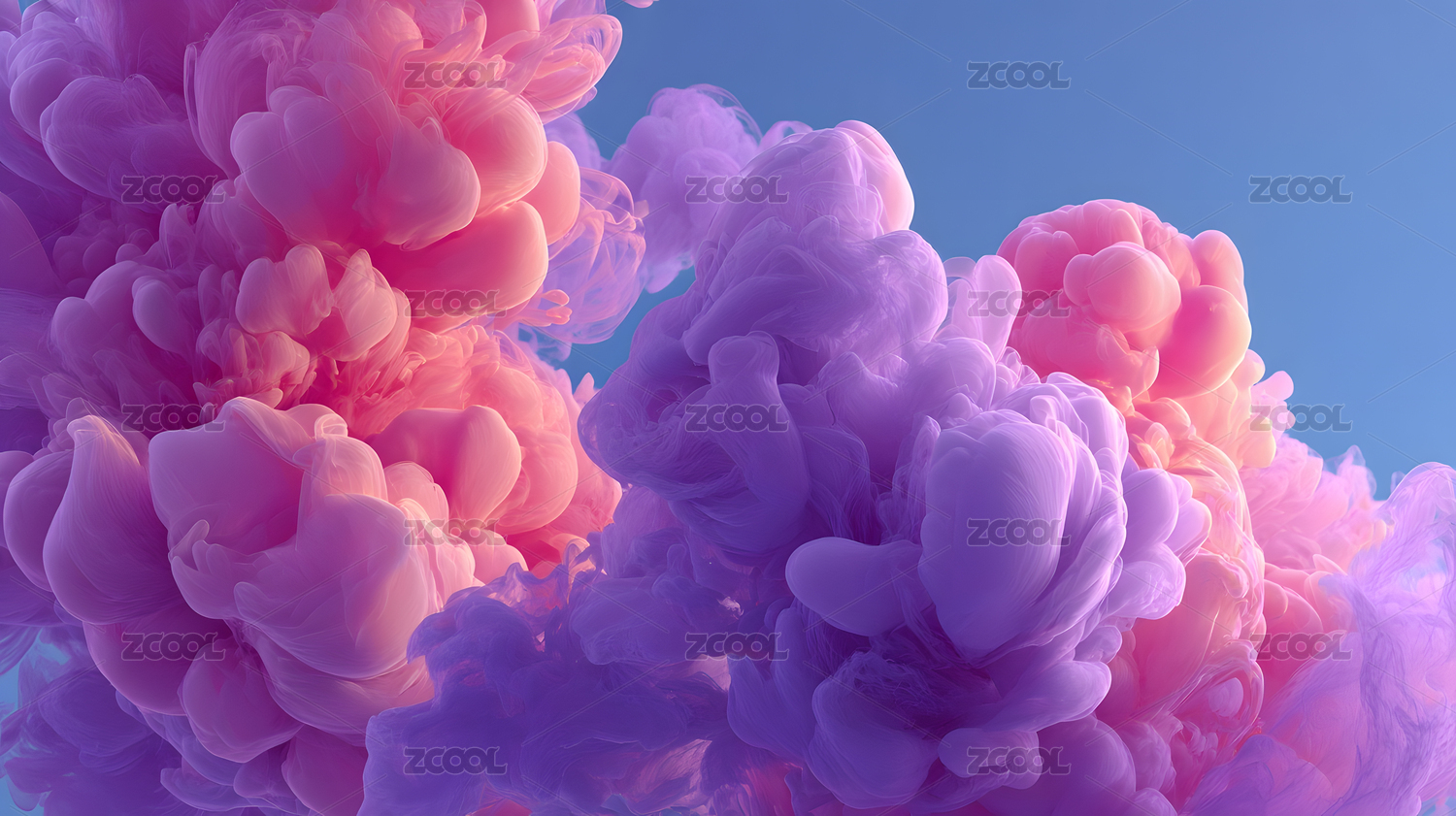 粉紫渐变流体云朵在浅蓝背景上呈现梦幻艺术