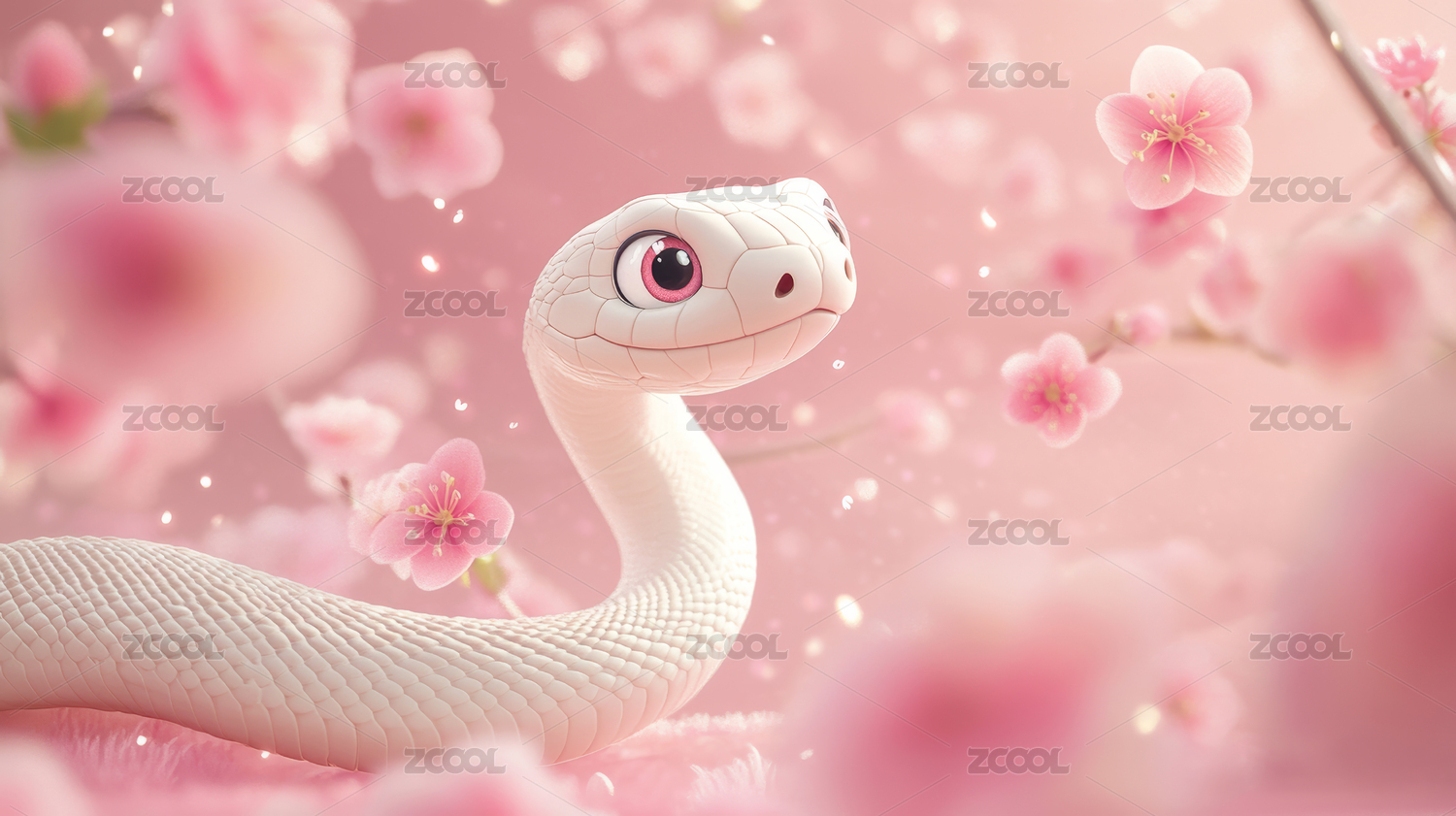粉色蛇和桃花树的3D渲染图